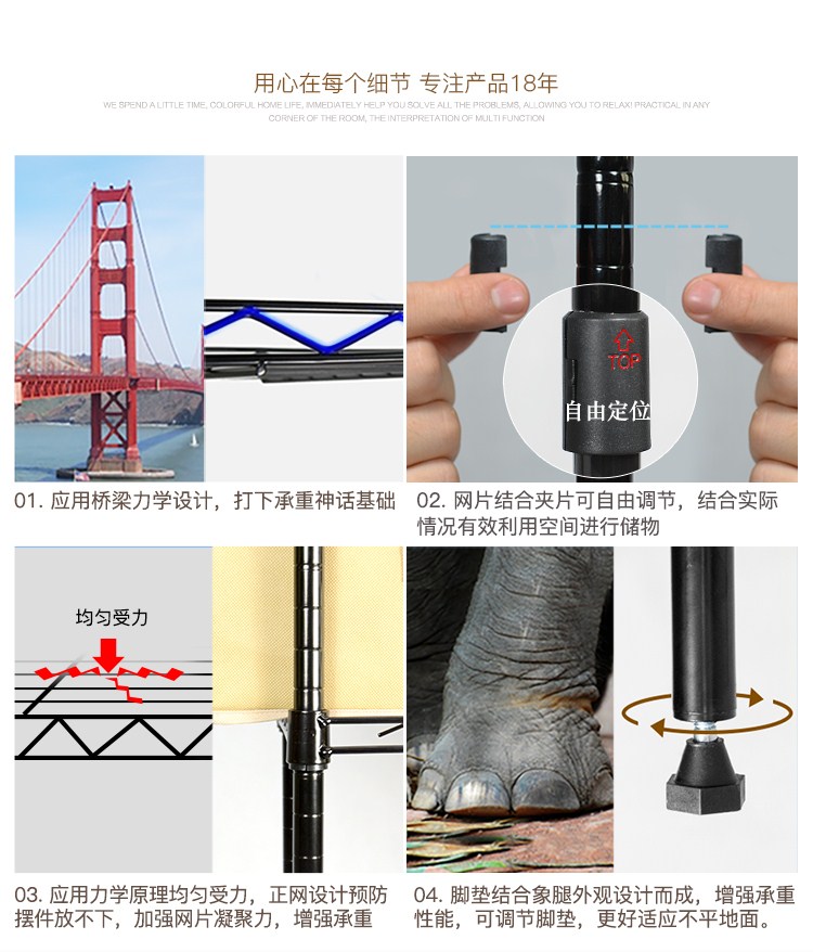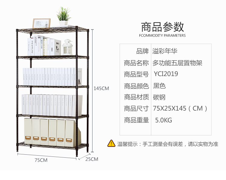 商品名称:溢彩年华 出口款厨房置物架 五层储物架微波炉架75*25*145cm移动