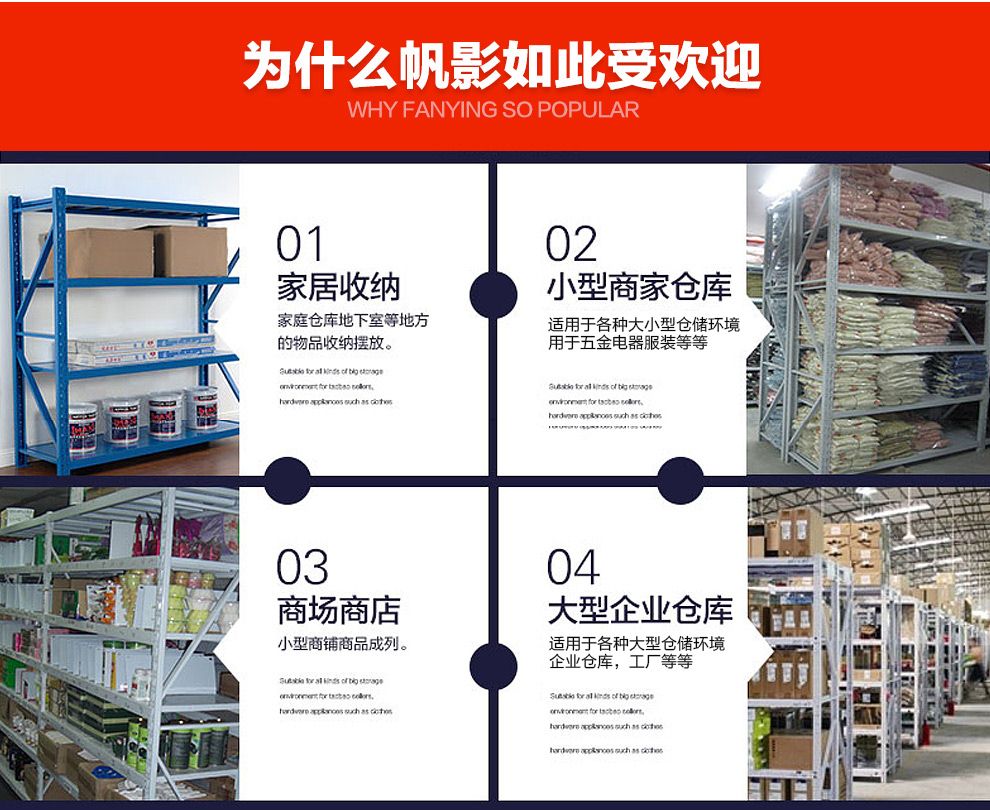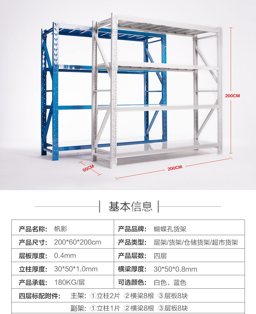 商品名称:帆影货架仓储货架180KG/层货架家用金属货架超市仓库货架仓储层