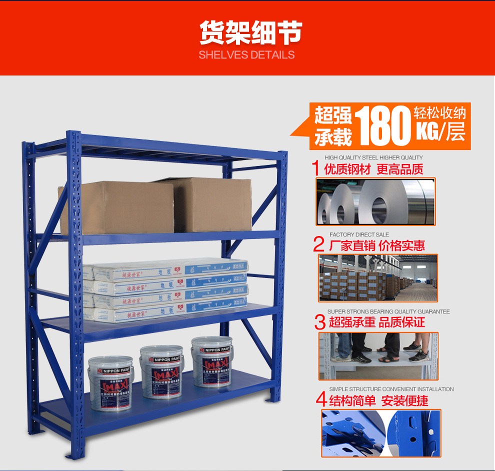 帆影货架仓储货架180KG/层货架家用金属货架超市仓库货架仓储层