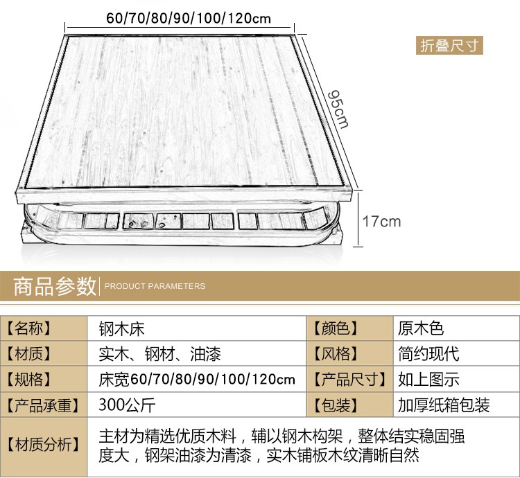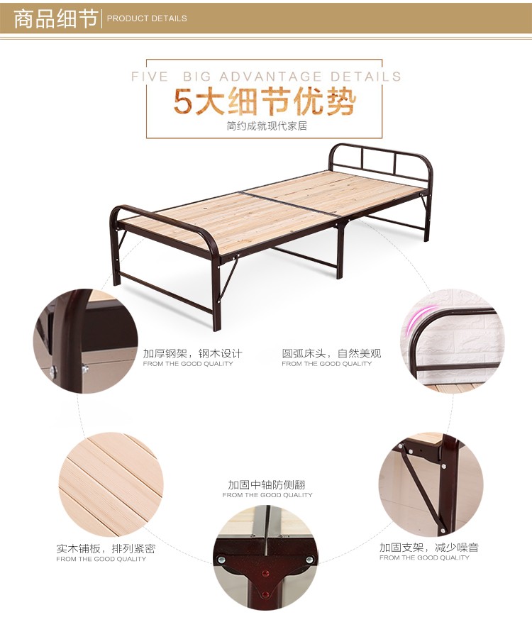 商品名称:依尔钢木床加固钢架折叠床单人床实木床双人床简易松木板床午休