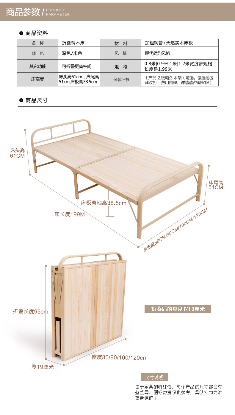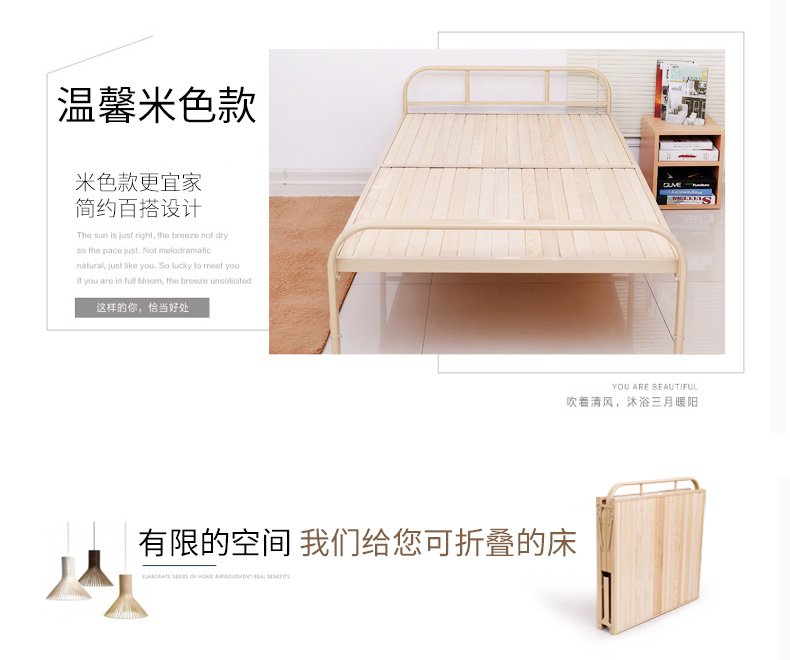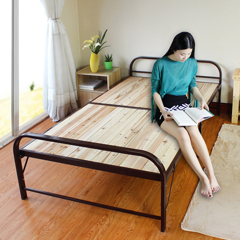 商品名称:巧霞家居加固钢架折叠床单人床实木床双人床简易木板床0.7M钢木