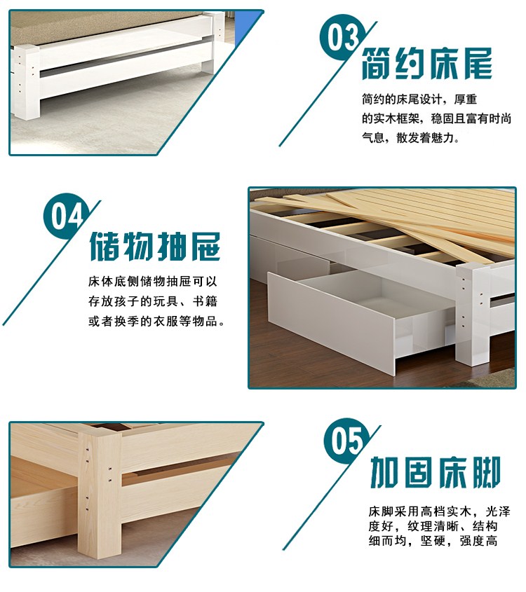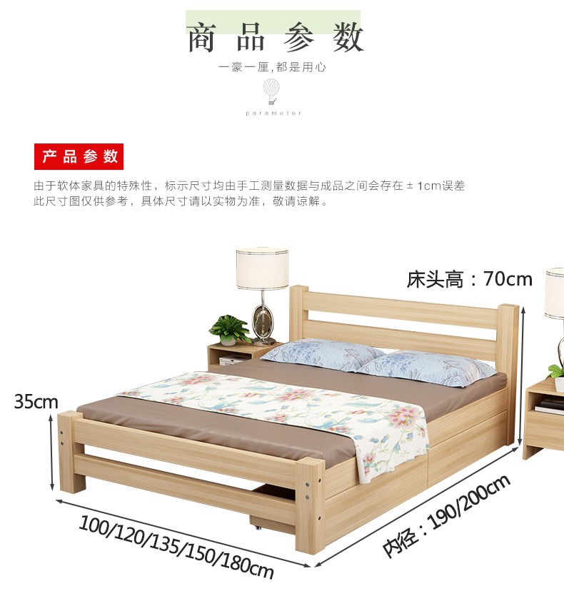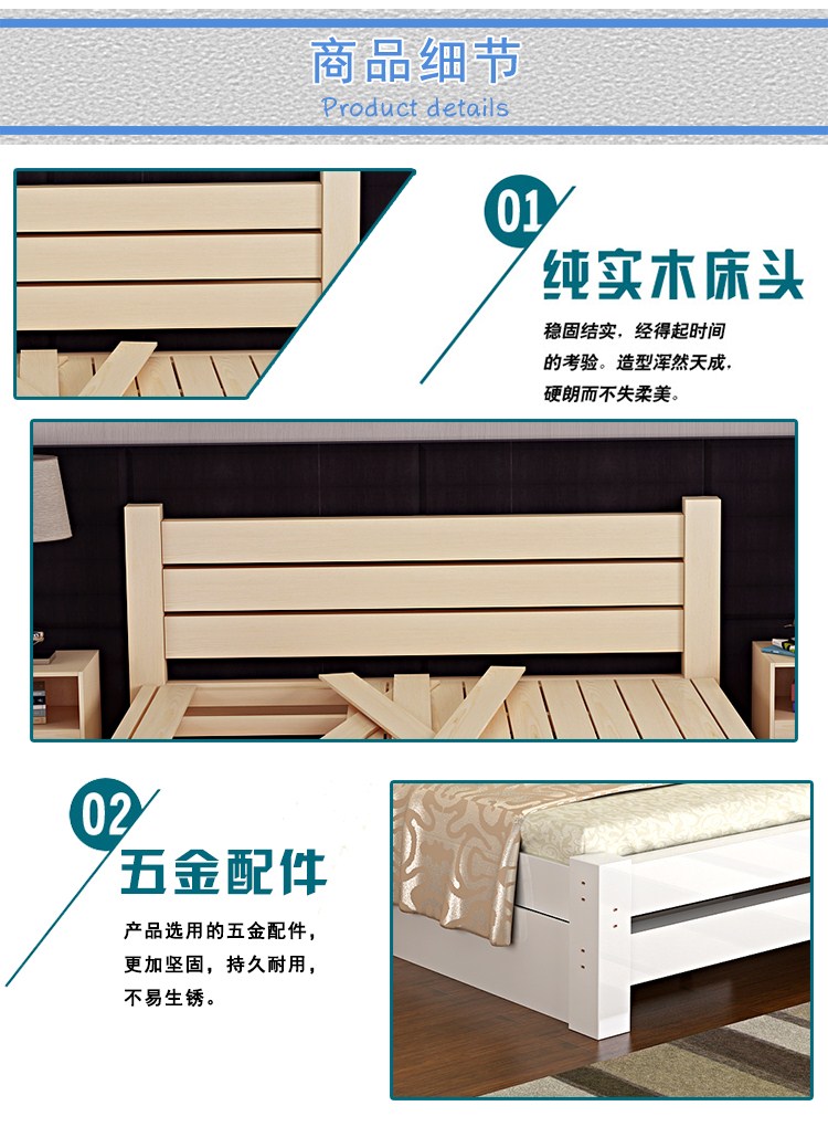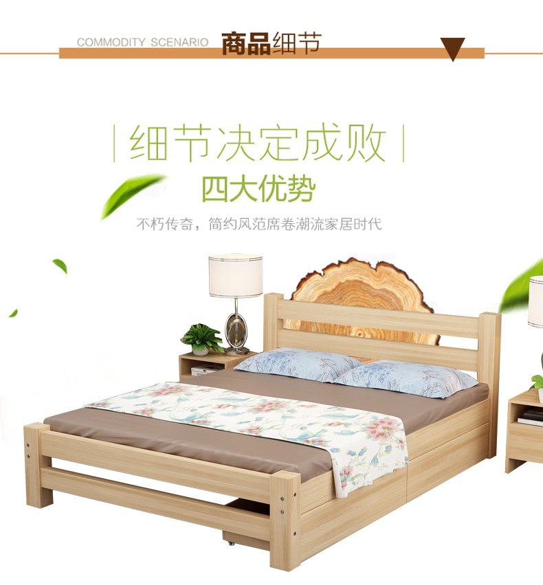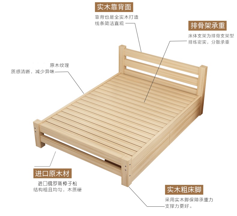 商品名称:骏通宝木林 实木床 床双人单人床1.8米大床1.2米松木床1米松木家