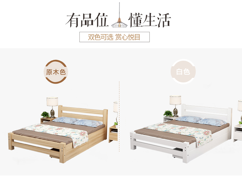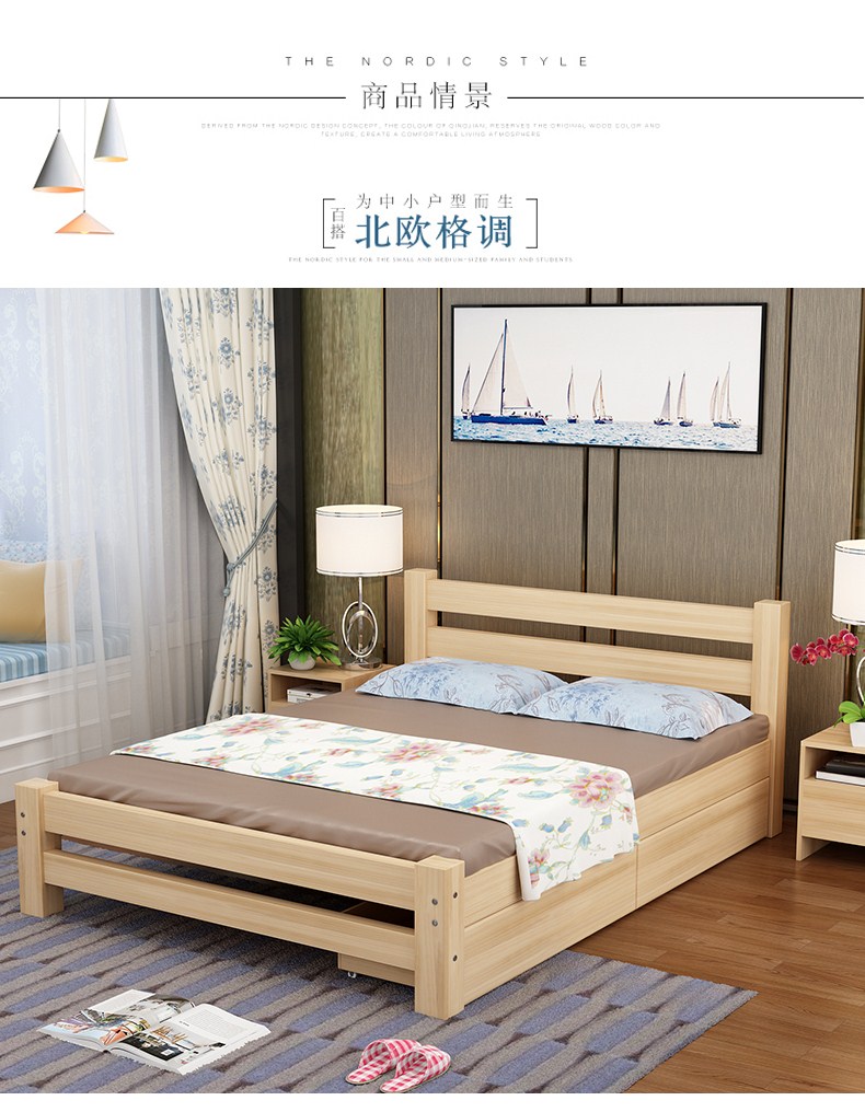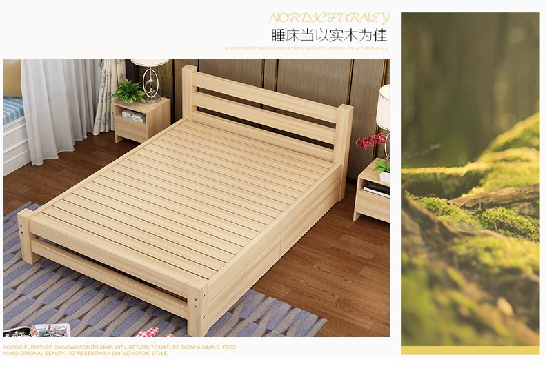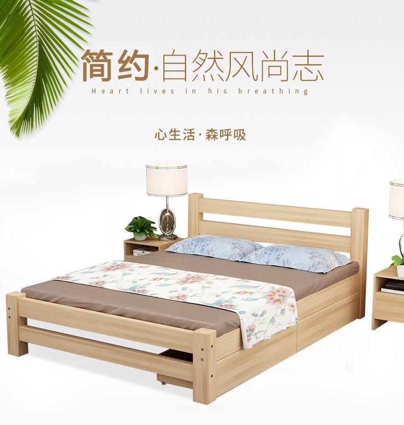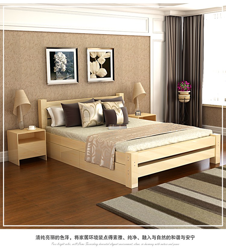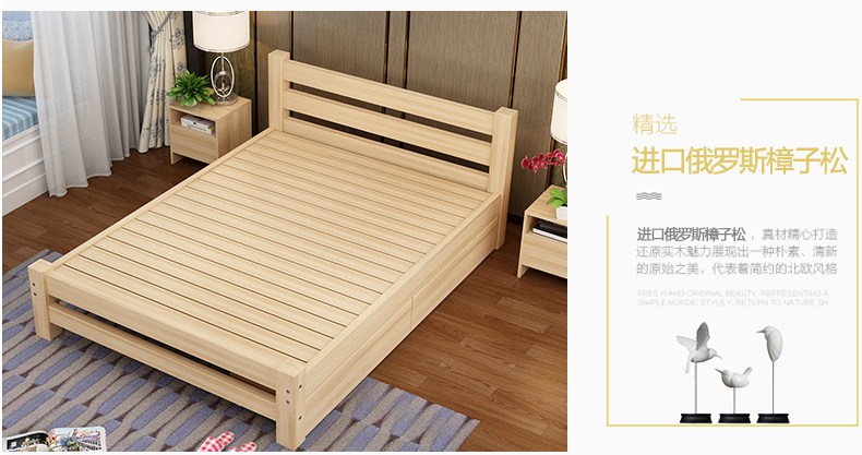 骏通宝木林 实木床 床双人单人床1.8米大床1.2米松木床1米松木家
