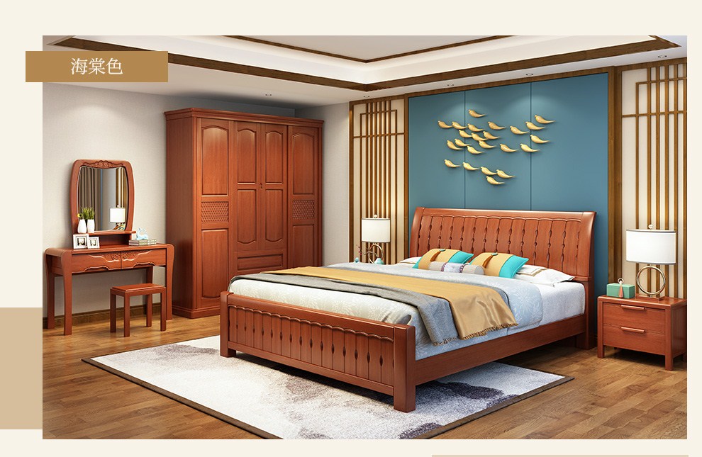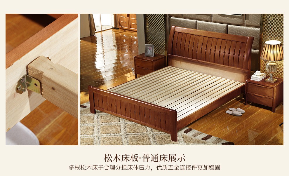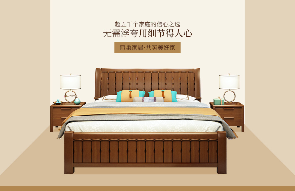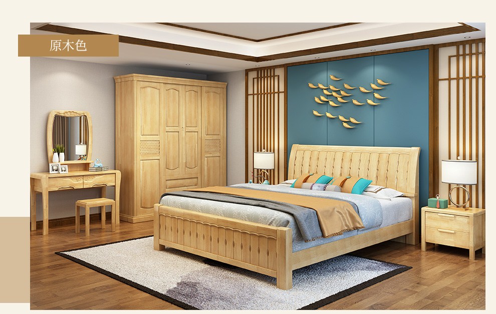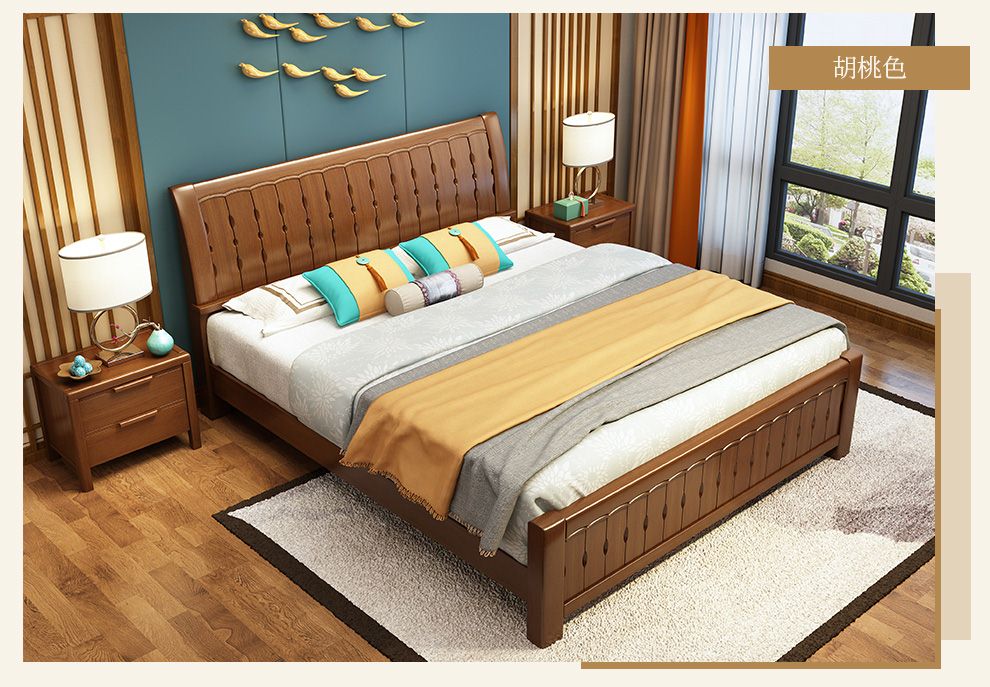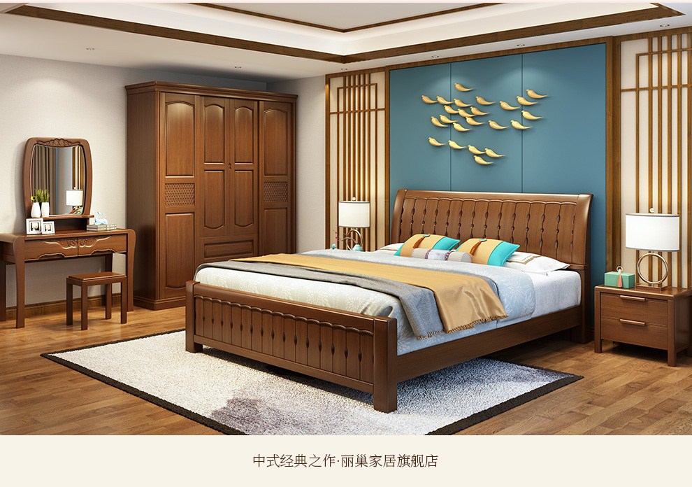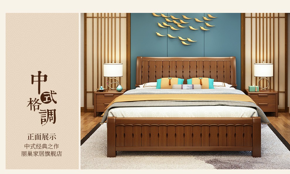 商品名称:丽巢 床 实木床1.8/1.5米现代中式卧室实木家具婚床双人床橡胶木