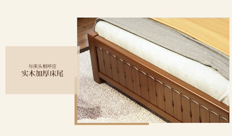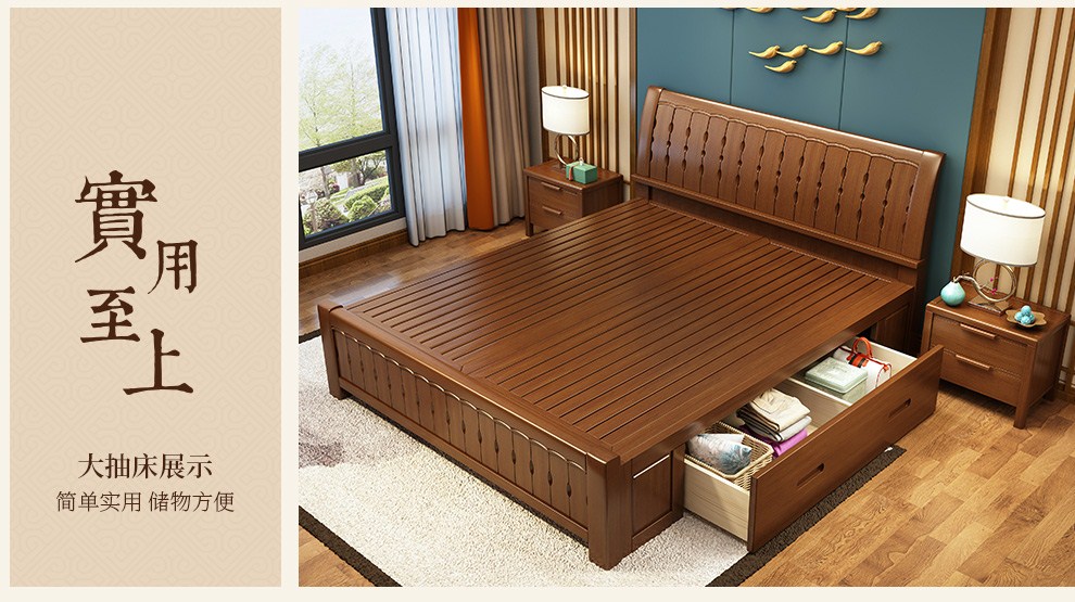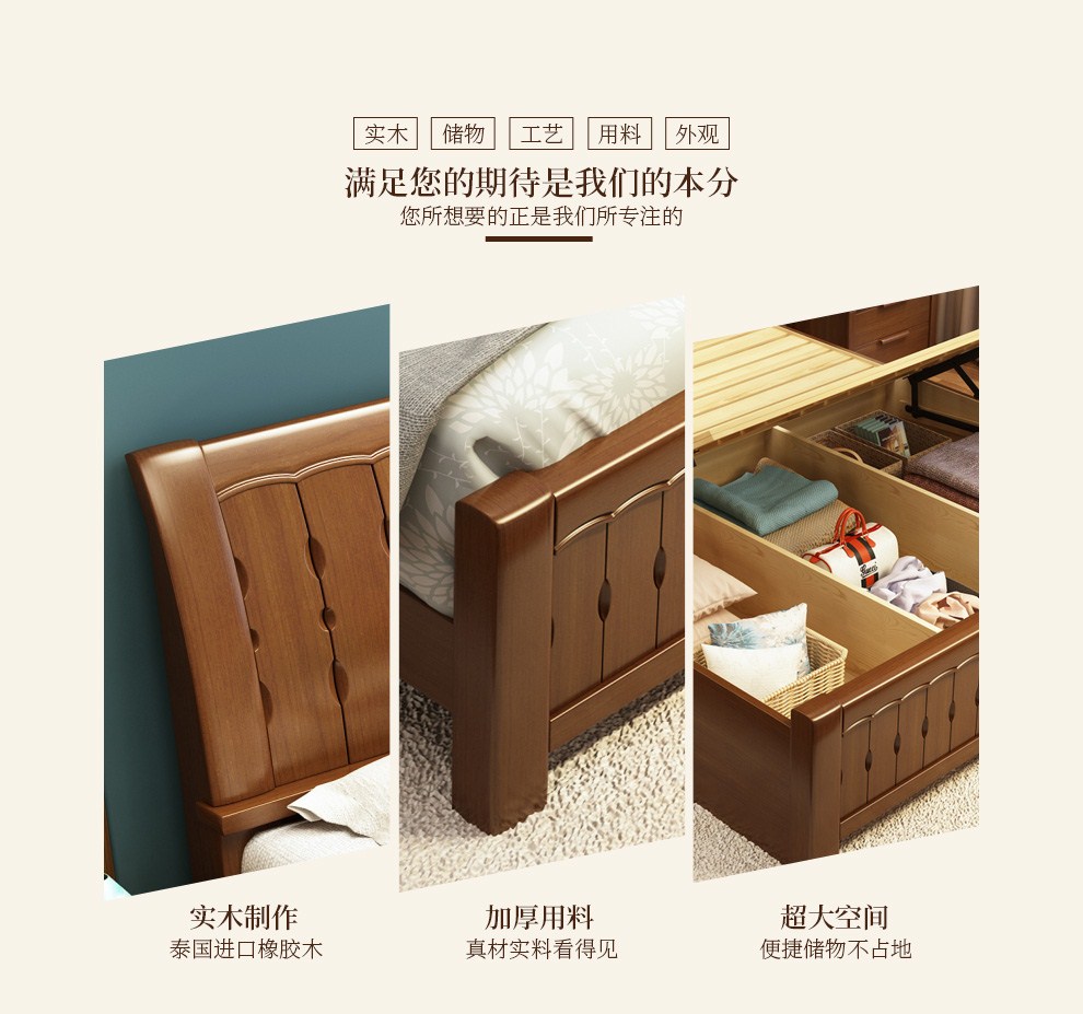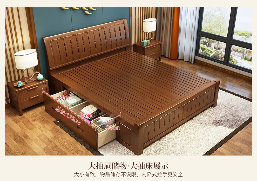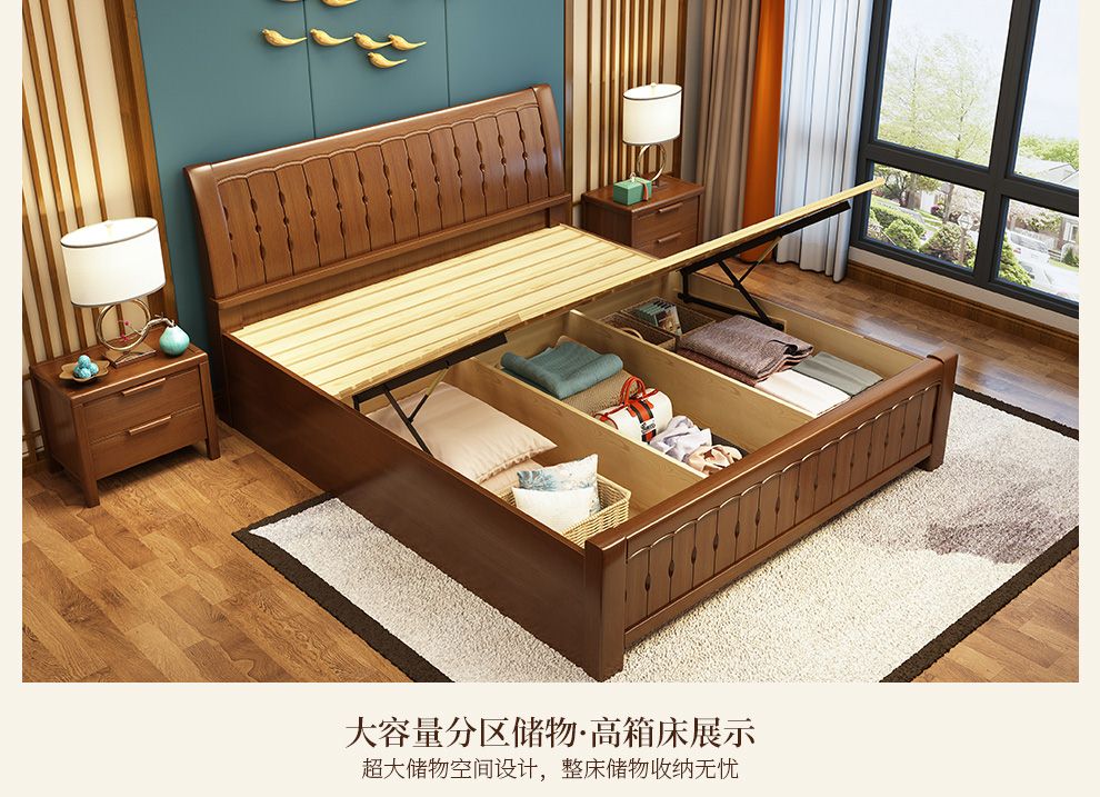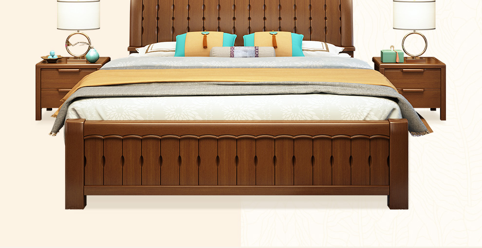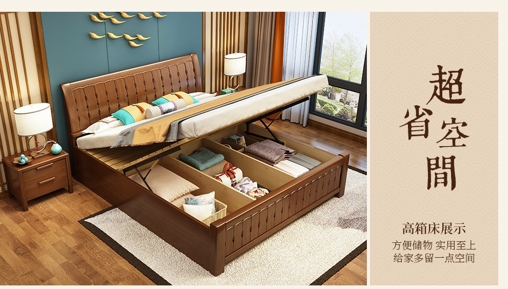商品名称:丽巢 床 实木床1.8/1.5米现代中式卧室实木家具婚床双人床橡胶木