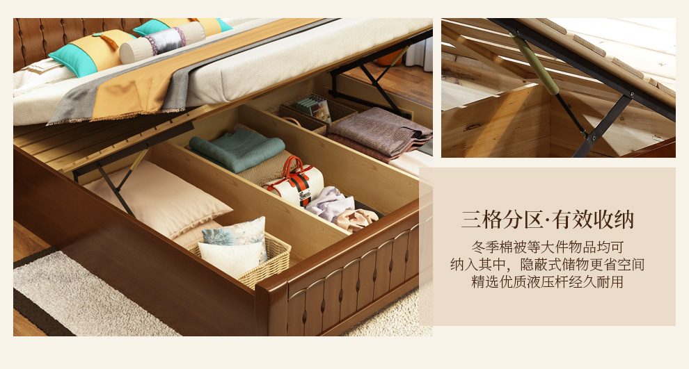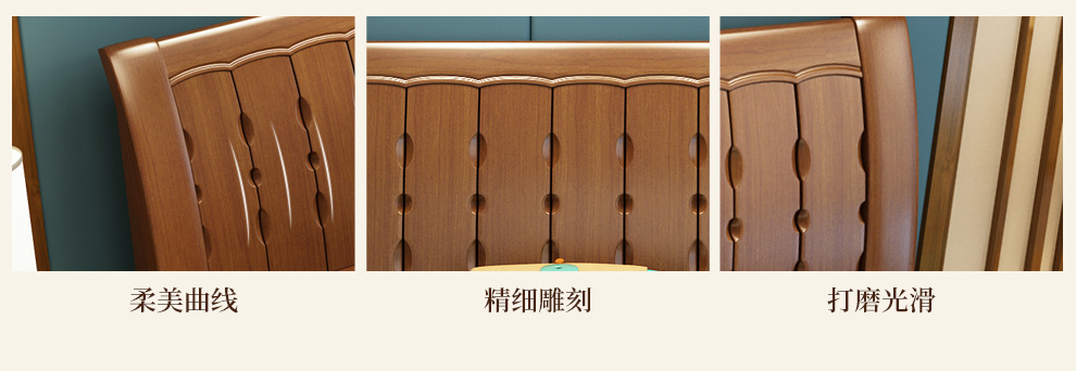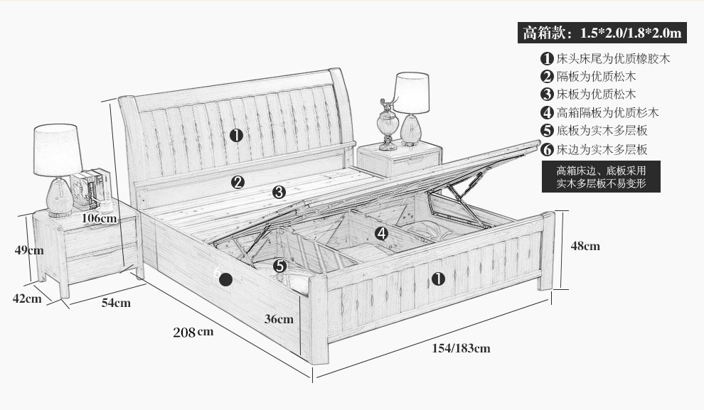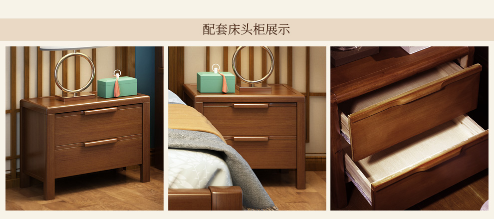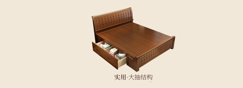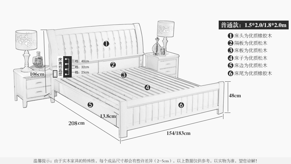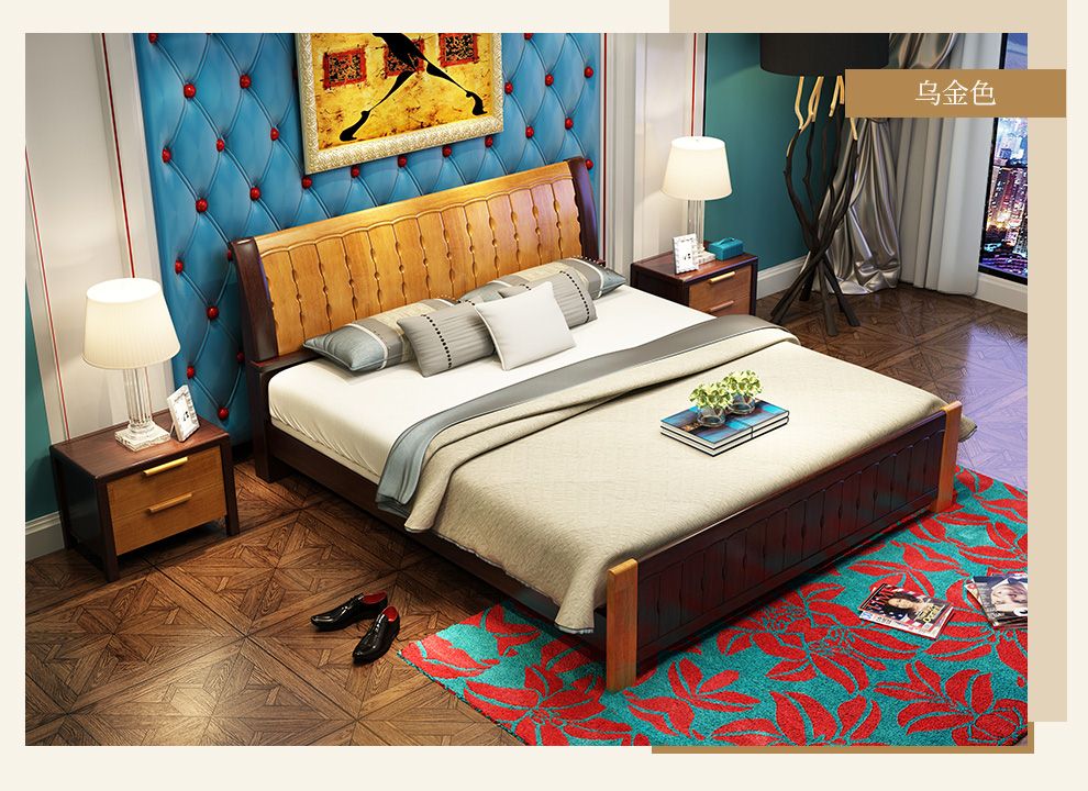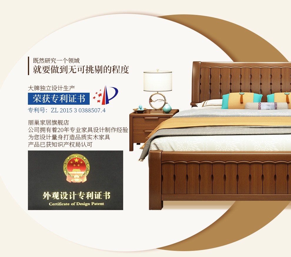 商品名称:丽巢 床 实木床1.8/1.5米现代中式卧室实木家具婚床双人床橡胶木