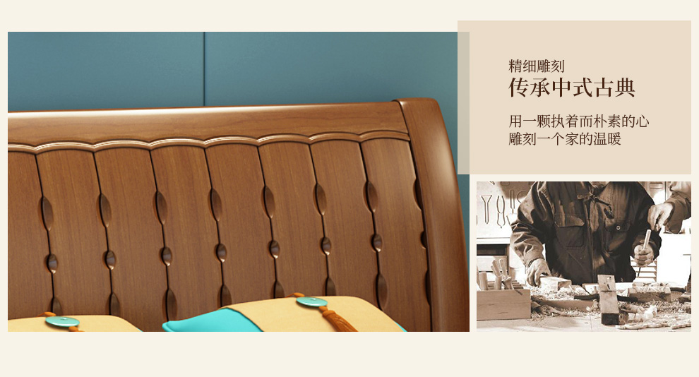 丽巢 床 实木床1.8/1.5米现代中式卧室实木家具婚床双人床橡胶木