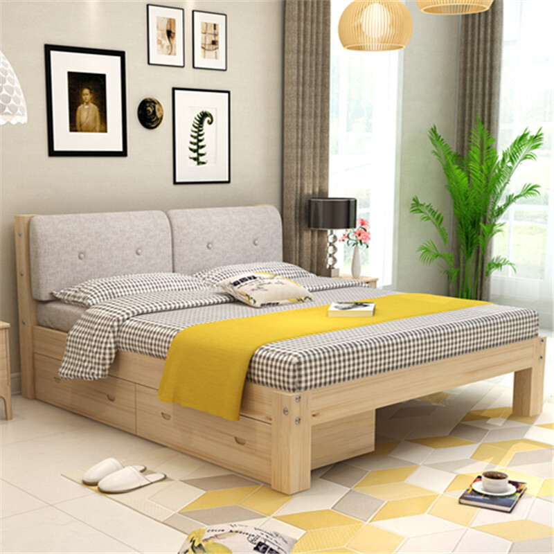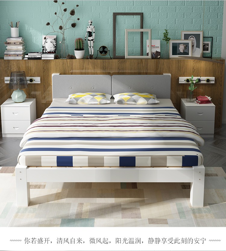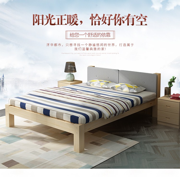 商品名称:帝灏木床实木床1.5单人床1.2米松木成人床双人床1.8米布艺床卧室