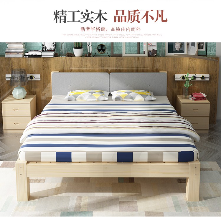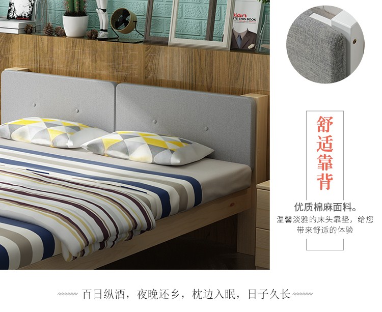 帝灏木床实木床1.5单人床1.2米松木成人床双人床1.8米布艺床卧室