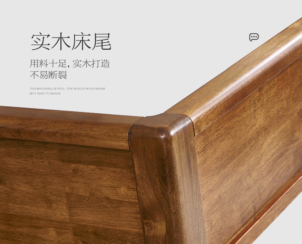 作木坊 家具 床 实木床1.5米1.8米双人床现代简约新中式胡桃木实