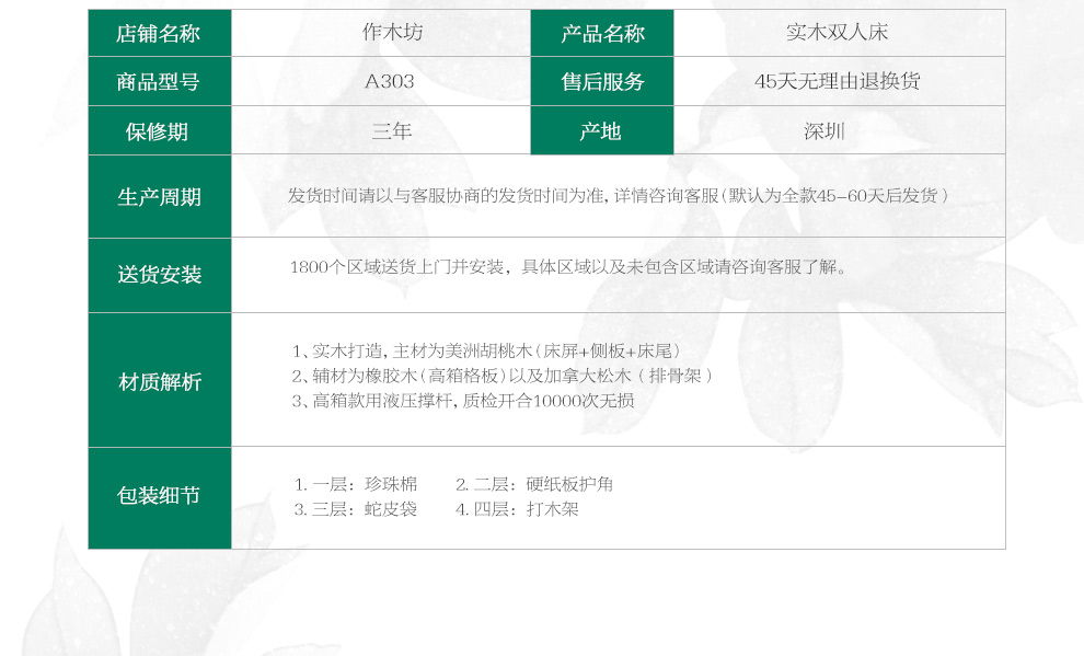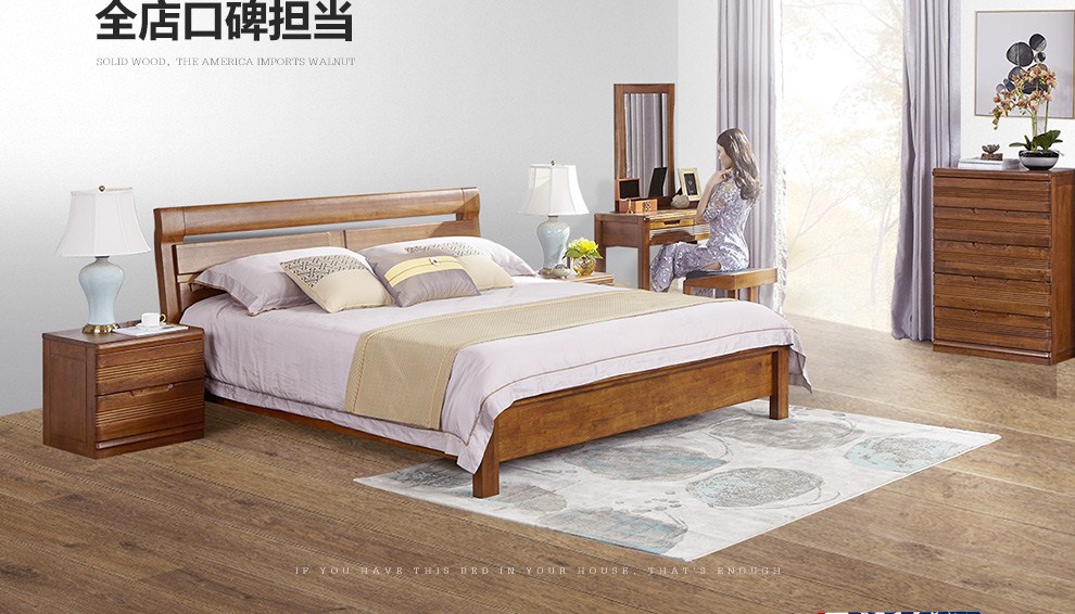 商品名称:作木坊 家具 床 实木床1.5米1.8米双人床现代简约新中式胡桃木实