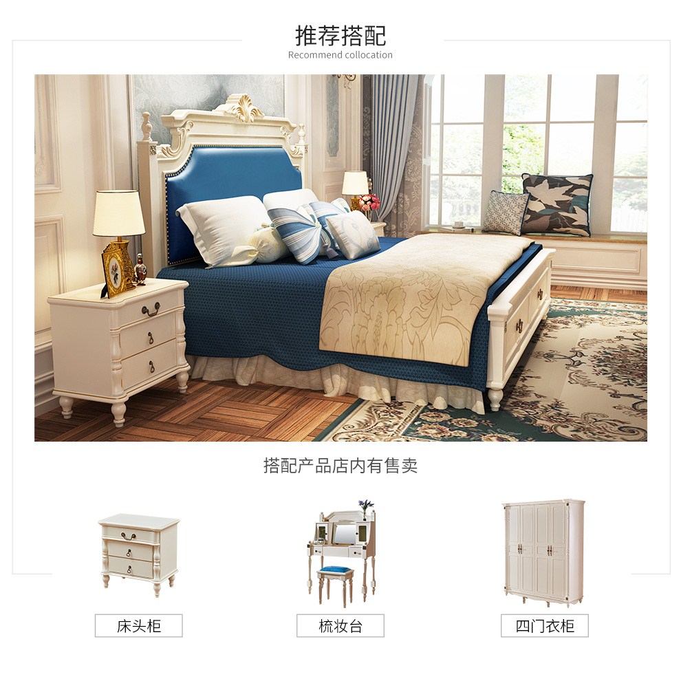 商品名称:贝黎诗 床 欧式床 实木床 美式床 双人床 韩式田园床 高箱床美式