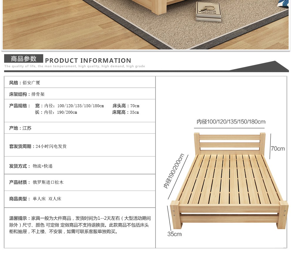 商品名称:佰安广厦 实木床 单人床成人床 松木床 双人床1.2米1.5米1.8米松