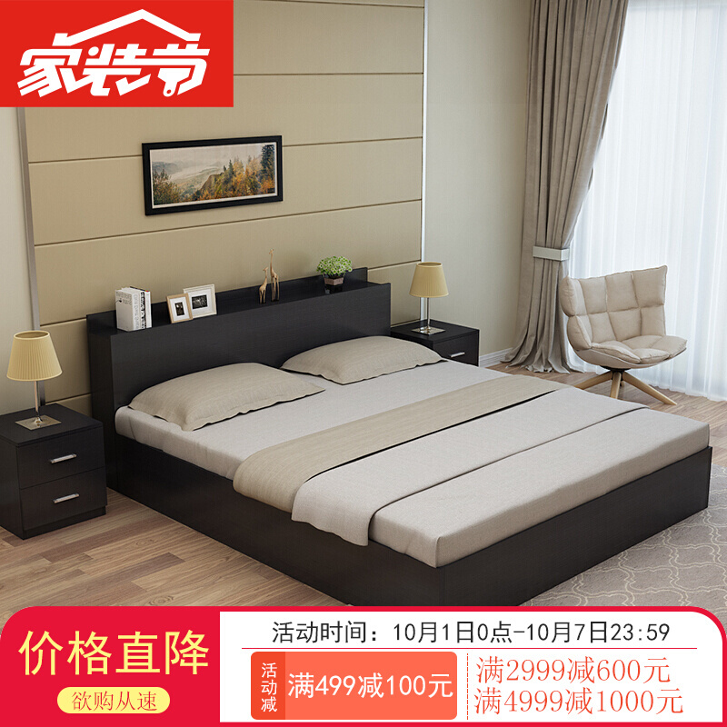 柏云森现代简约板式床1.2米1.5米1.8双人床榻榻米高箱储物床木质
