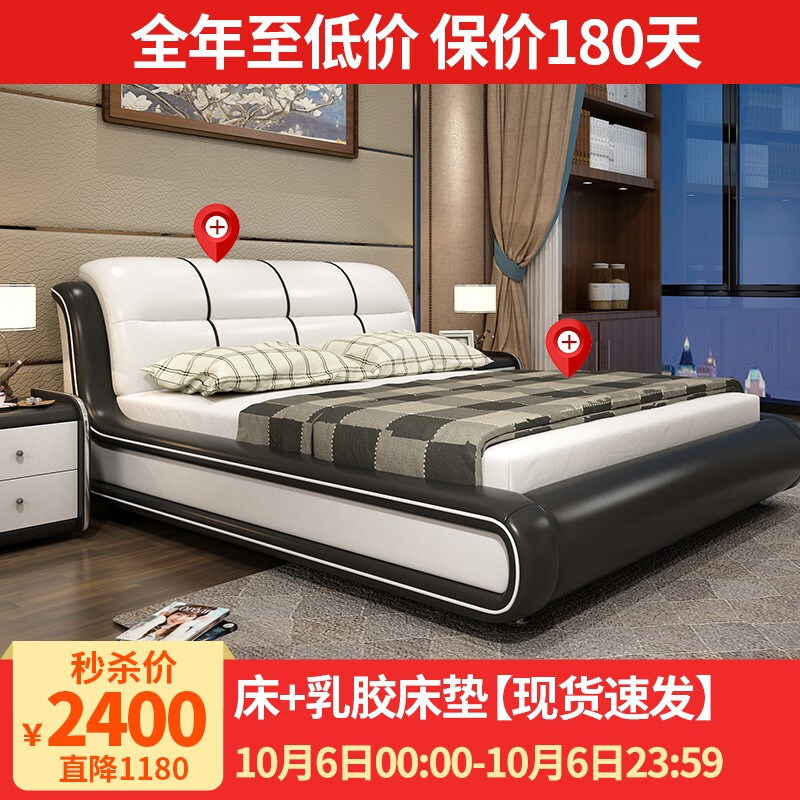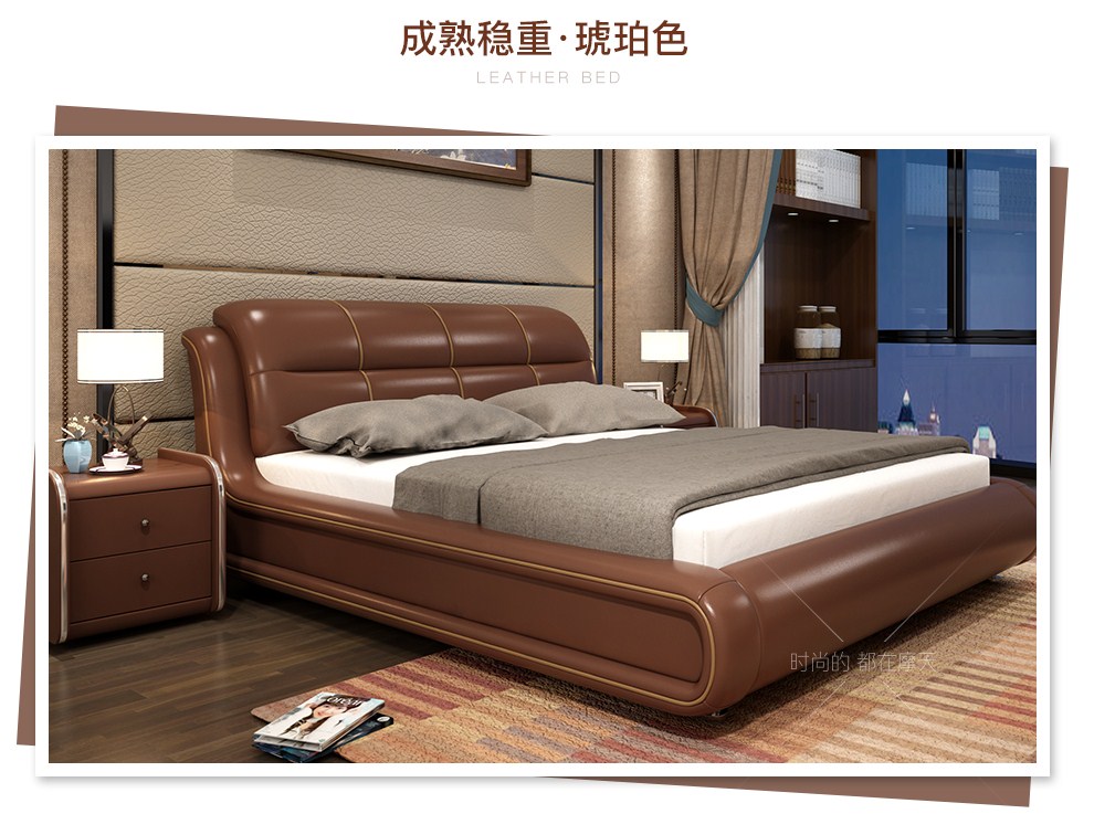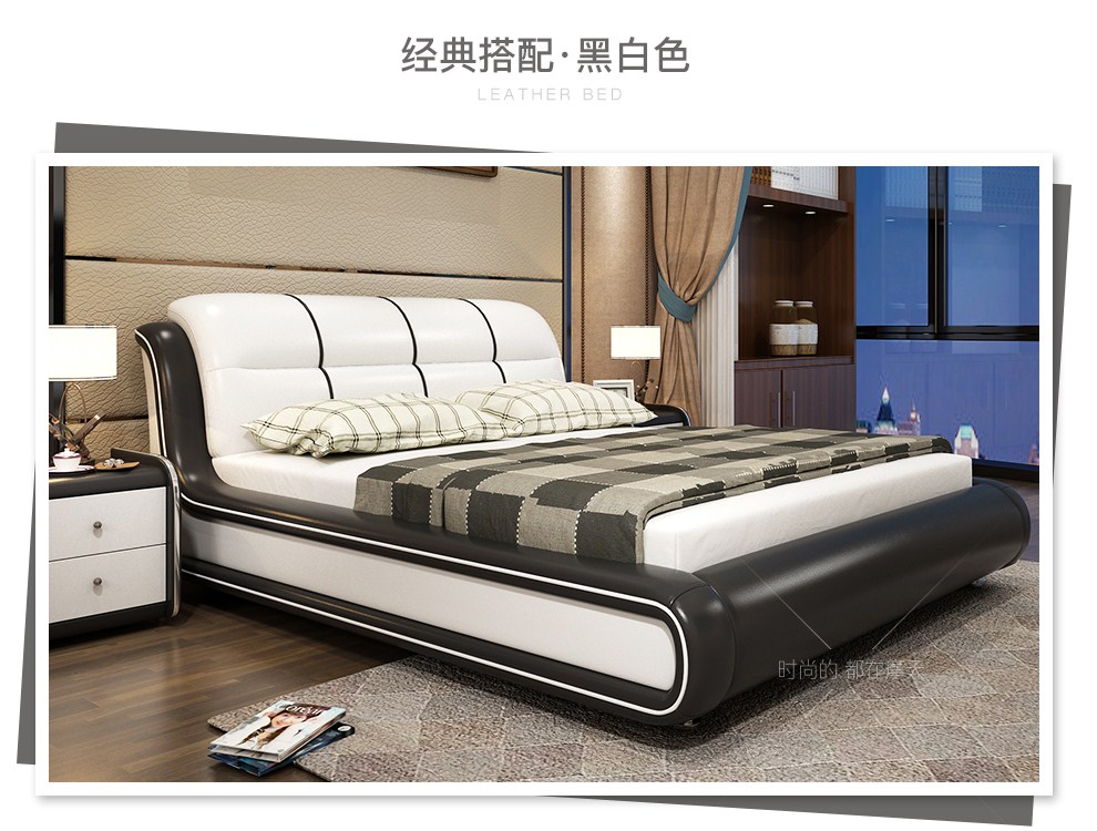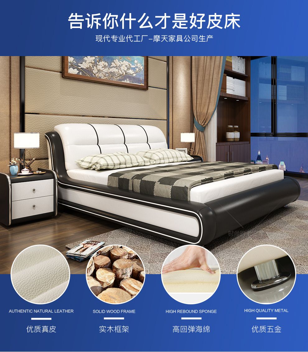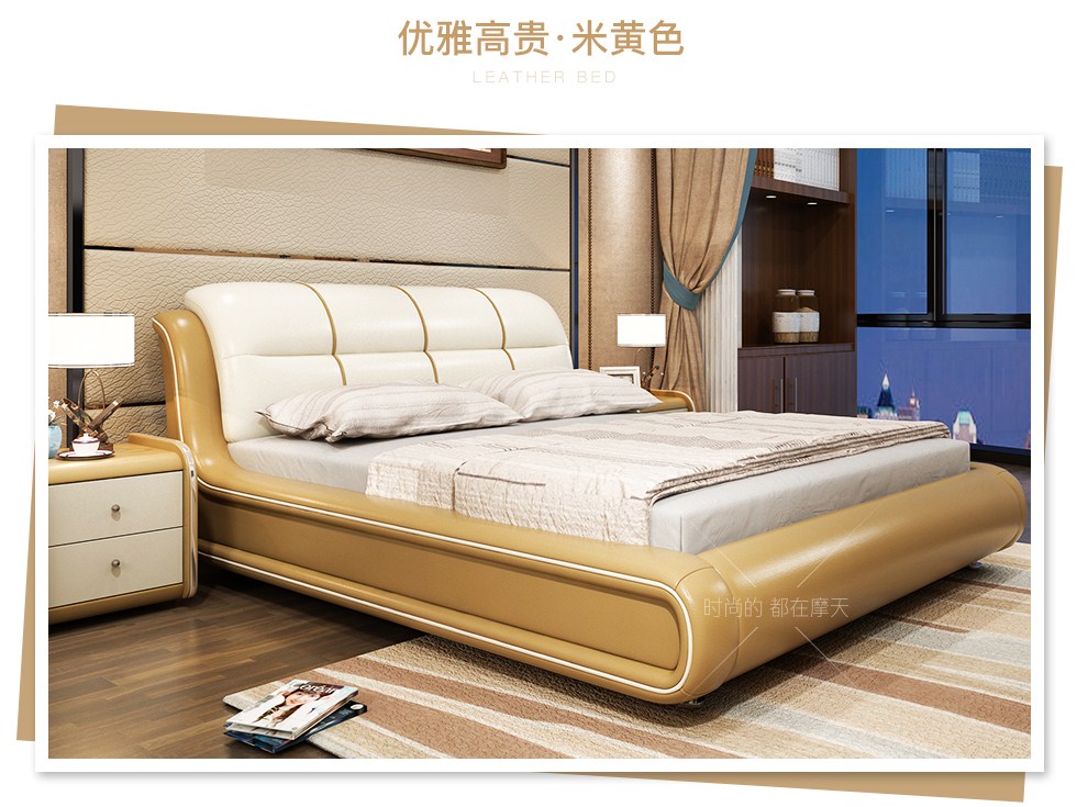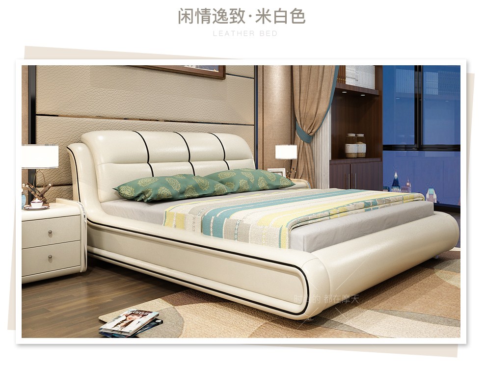 商品名称:摩天(Motian)床 皮床真皮床1.8m双人床公主床卧室大床家具真皮