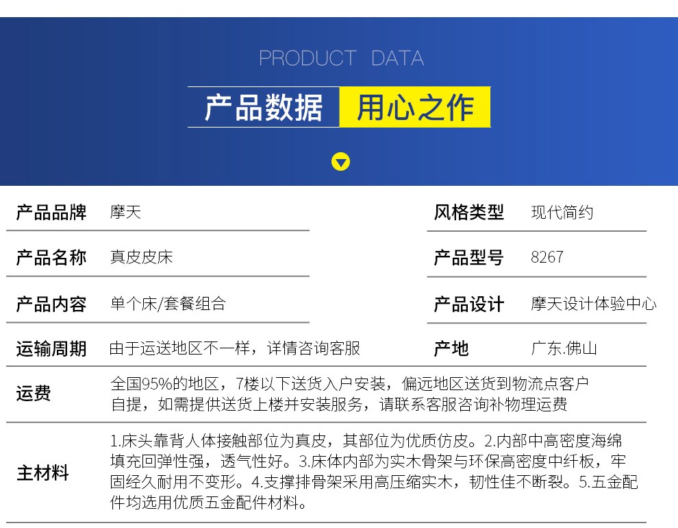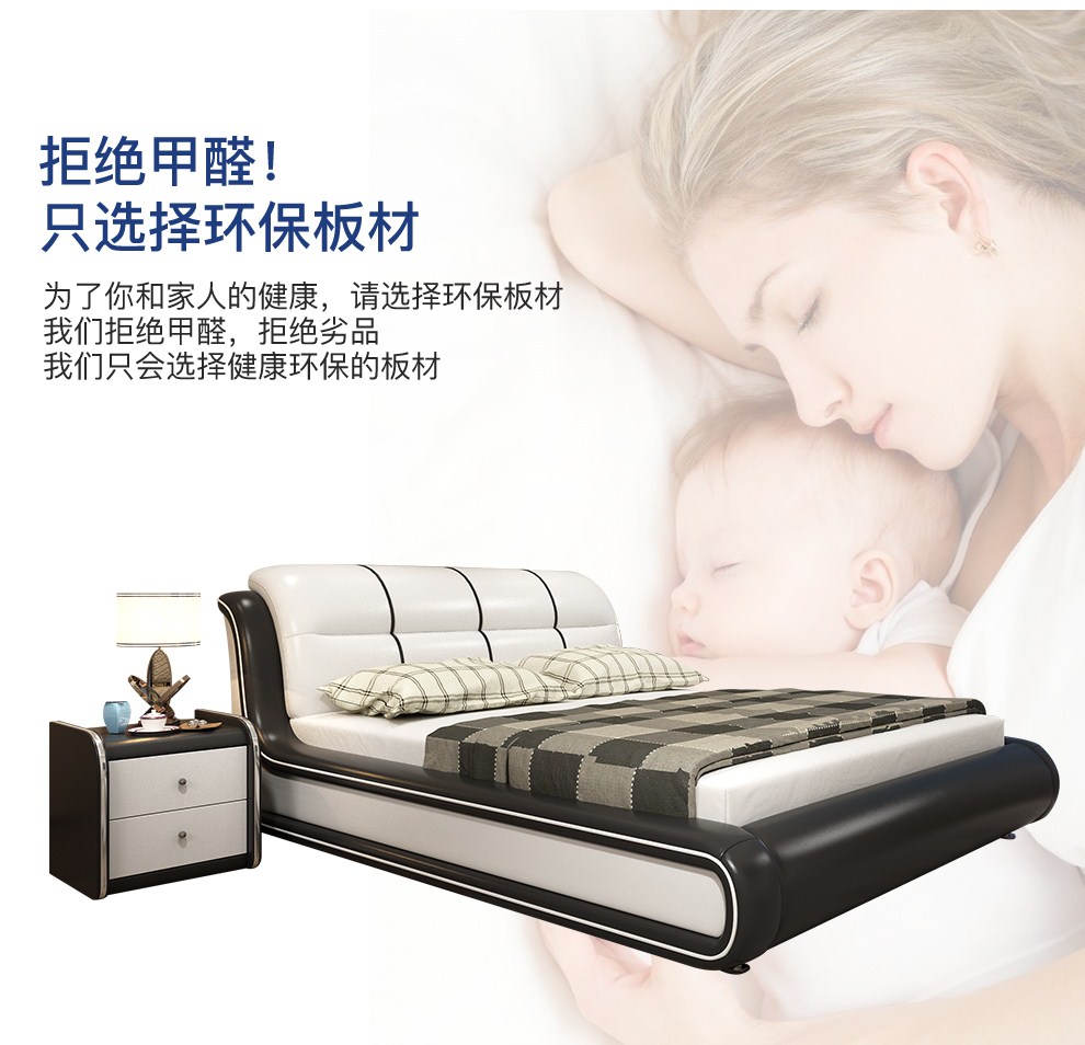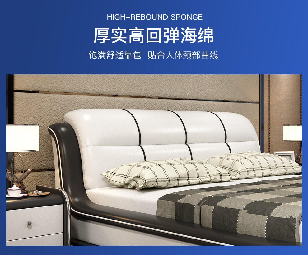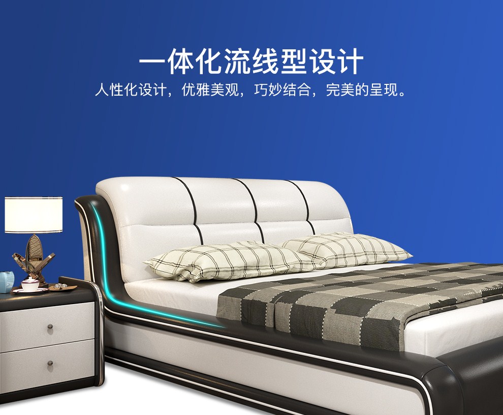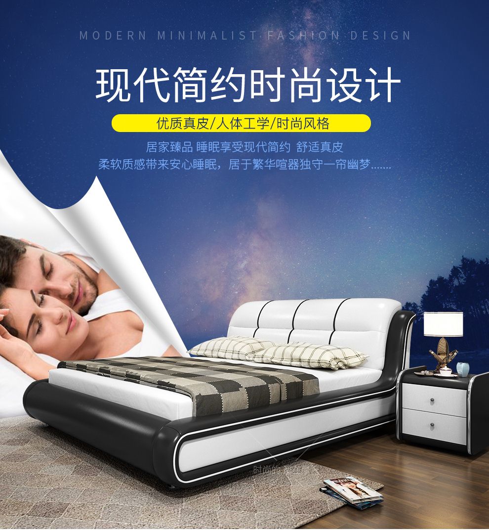 商品名称:摩天(Motian)床 皮床真皮床1.8m双人床公主床卧室大床家具真皮