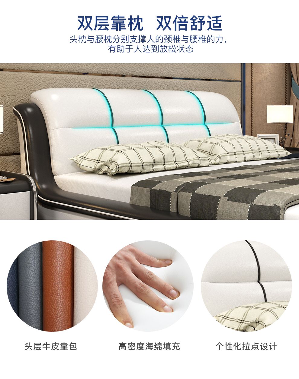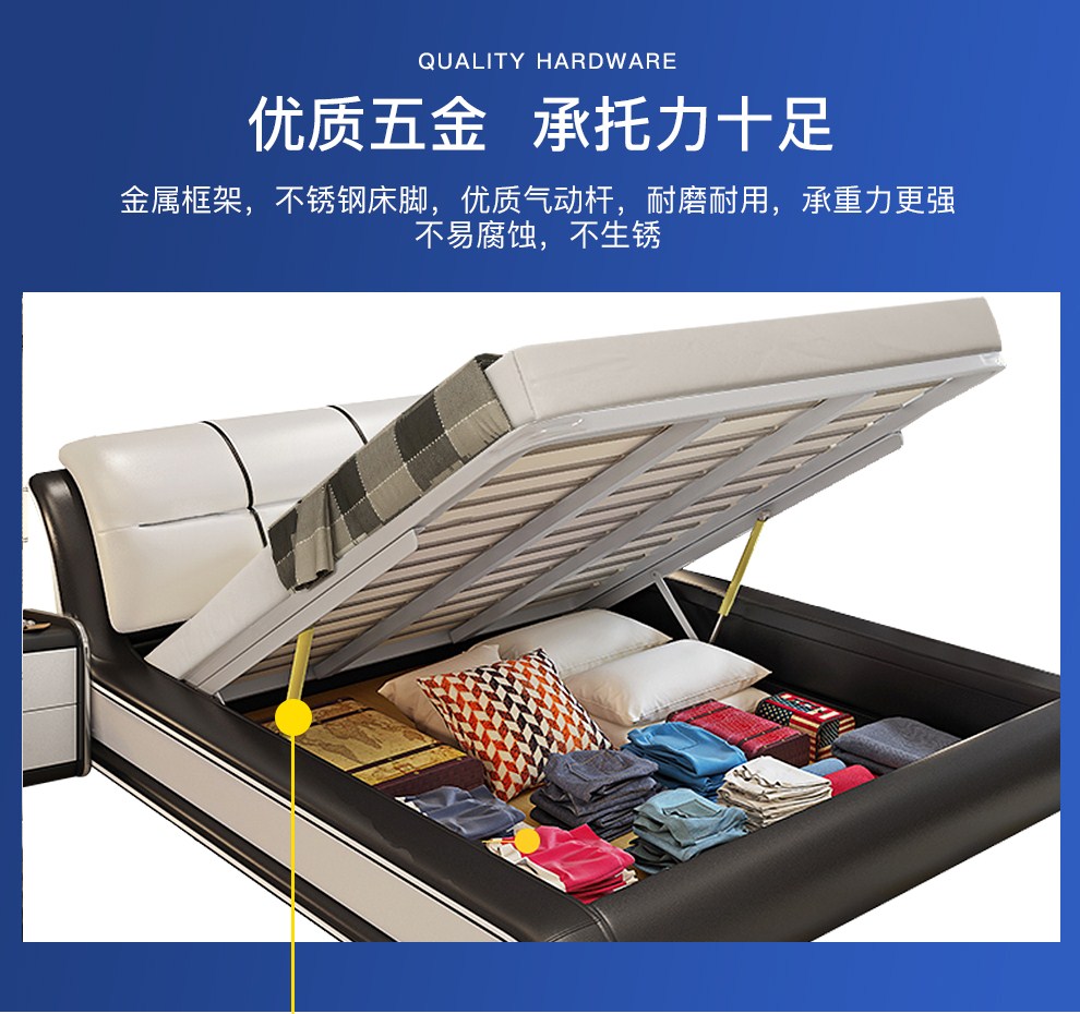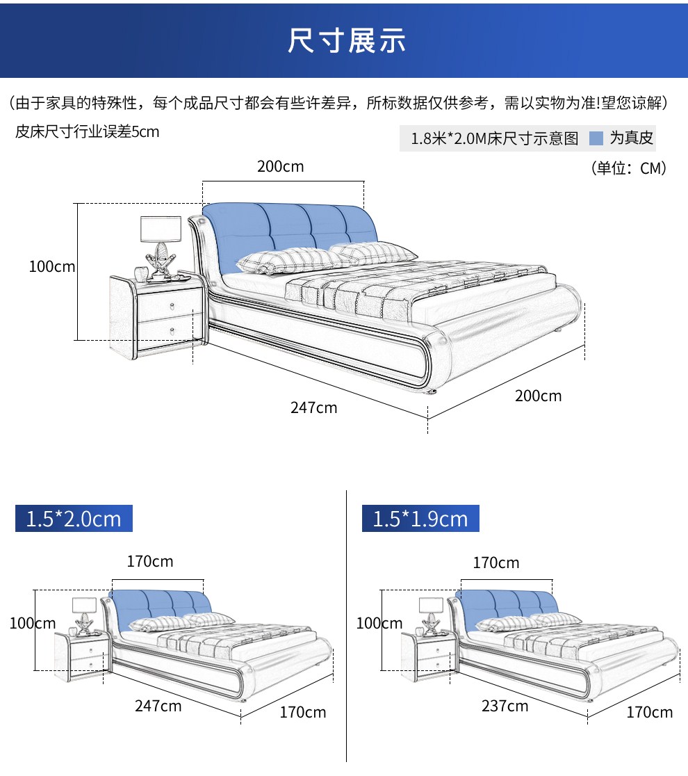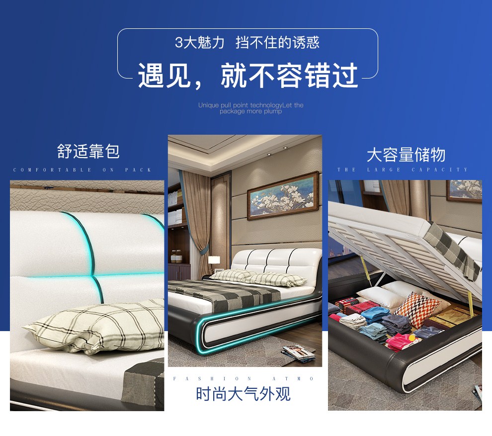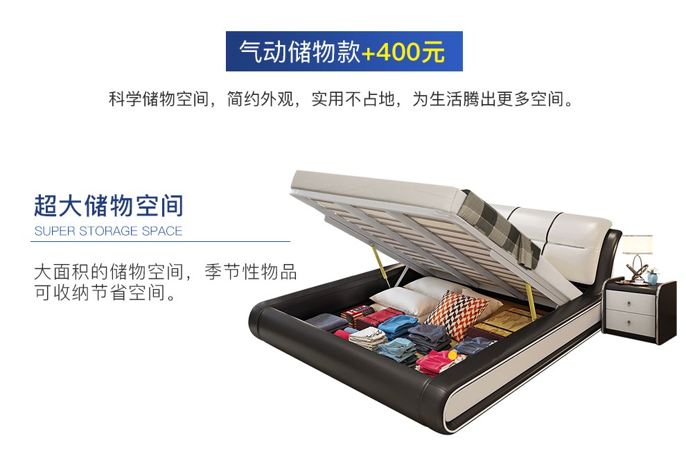 商品名称:摩天(Motian)床 皮床真皮床1.8m双人床公主床卧室大床家具真皮