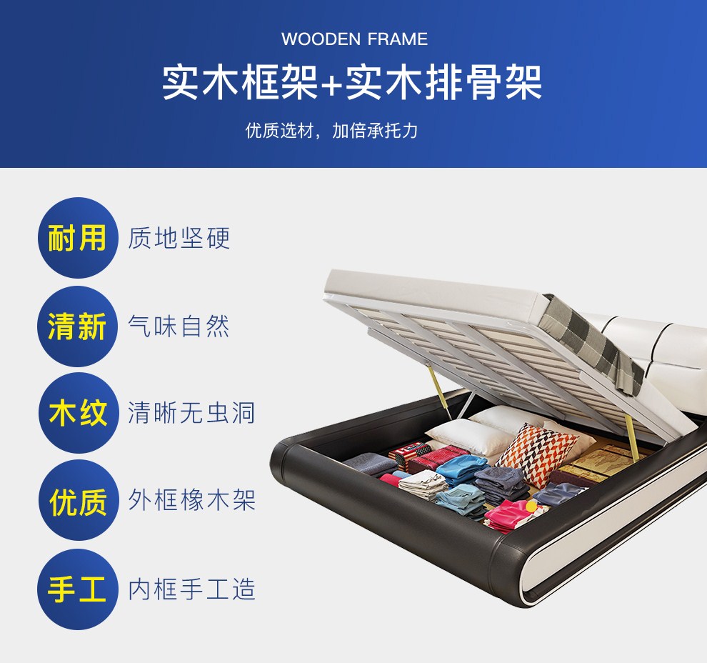 摩天(Motian)床 皮床真皮床1.8m双人床公主床卧室大床家具真皮