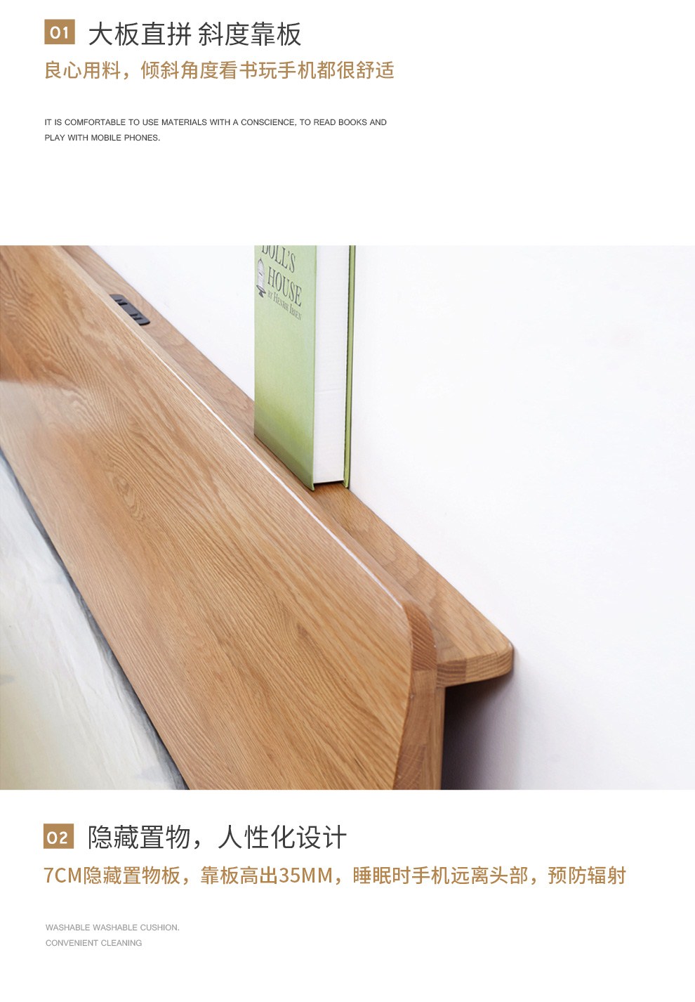 商品名称:悠质家 床 实木床1.8米单人双人床1.5米北欧橡木卧室家具 A1703