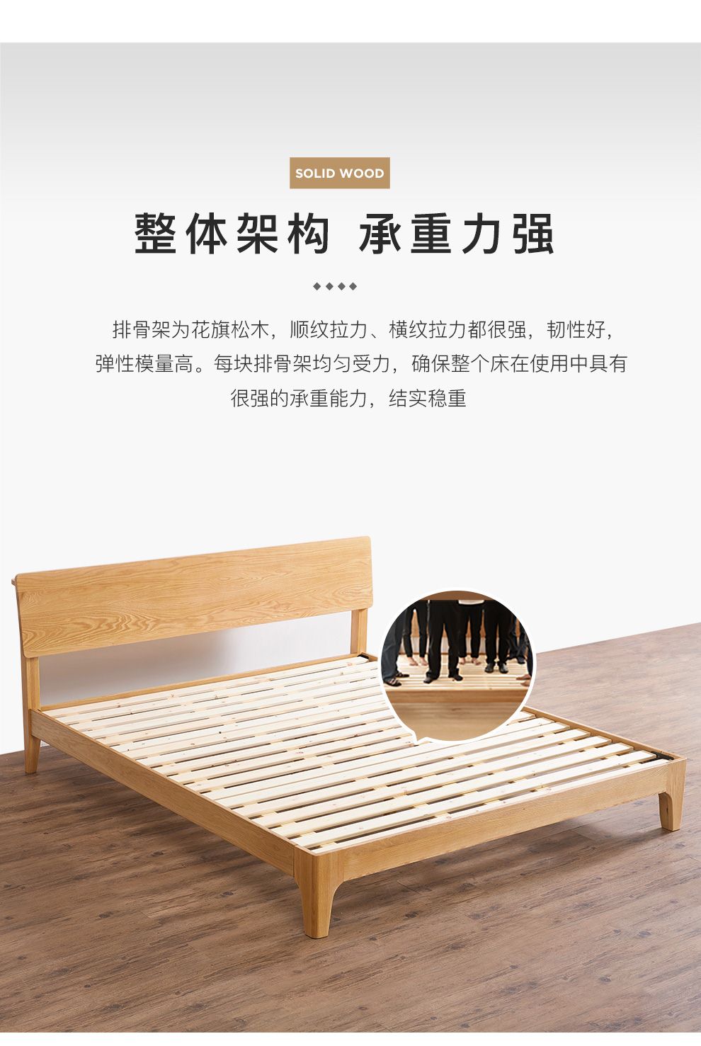 悠质家 床 实木床1.8米单人双人床1.5米北欧橡木卧室家具 A1703