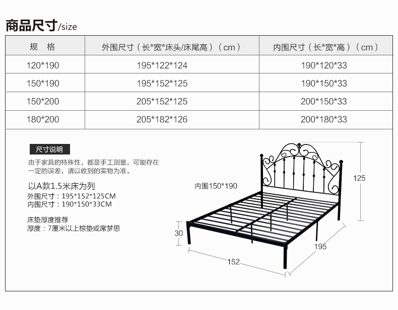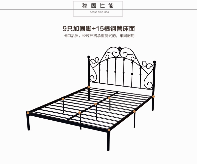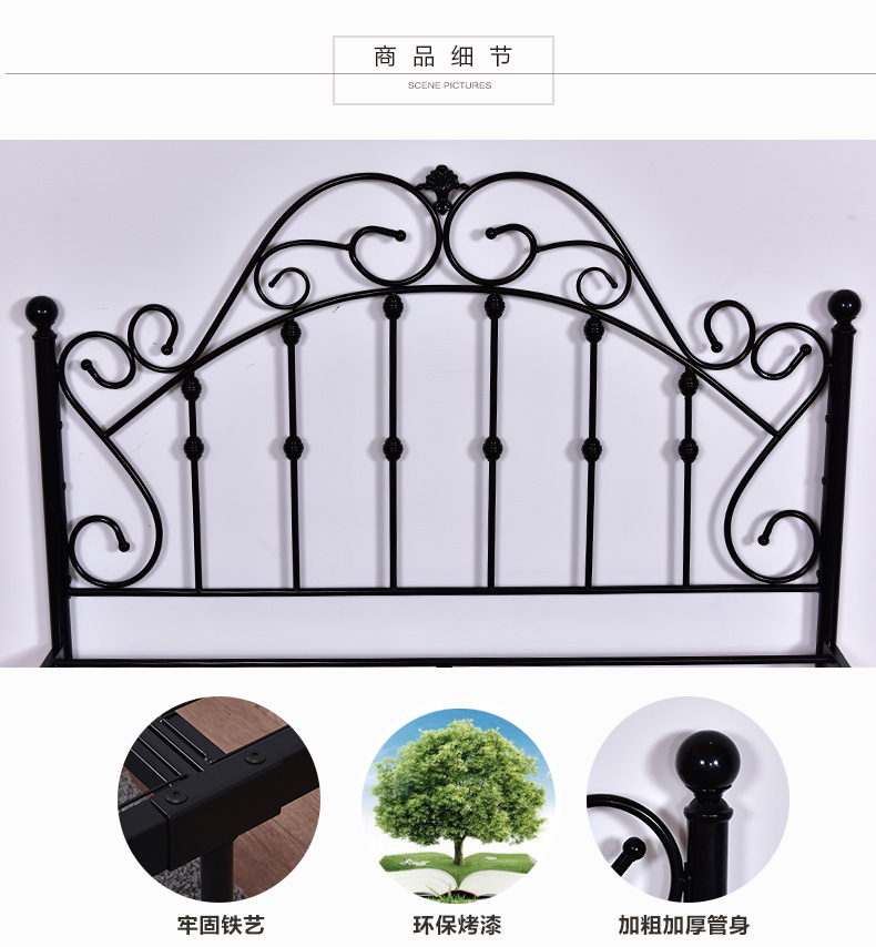 商品名称:劲豹 欧式铁艺床双人床 金属铁床单人床 环保烤漆简易时尚 1.5米