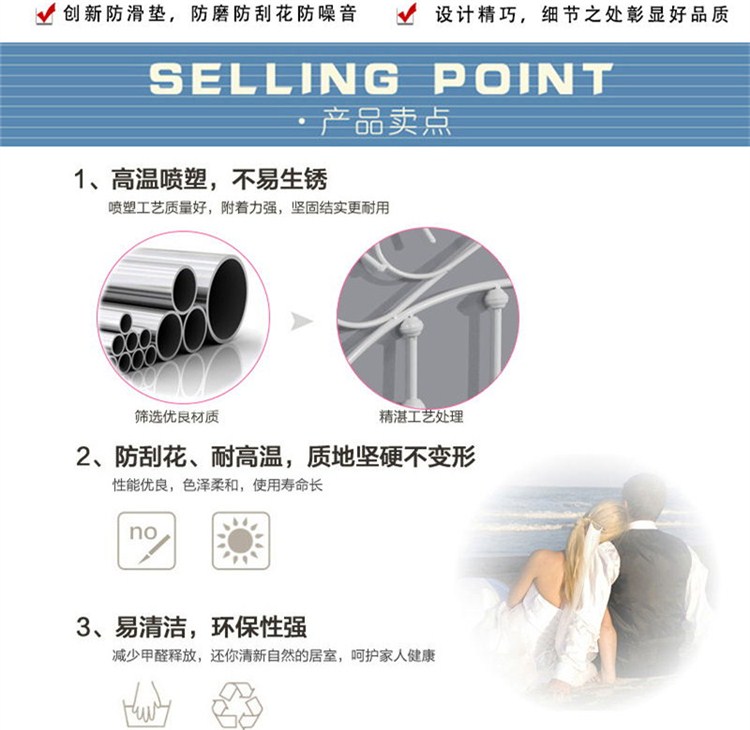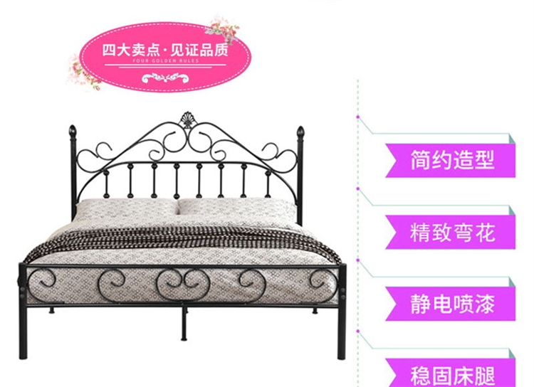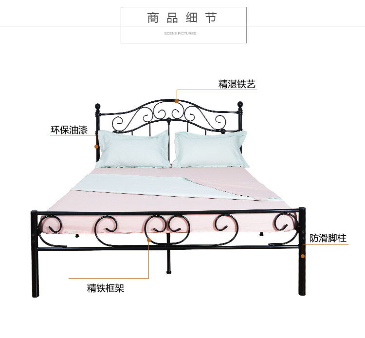 商品名称:欧式环保铁艺床1.5米1.8米1.2米单人床双人床铁床金属钢管床典雅