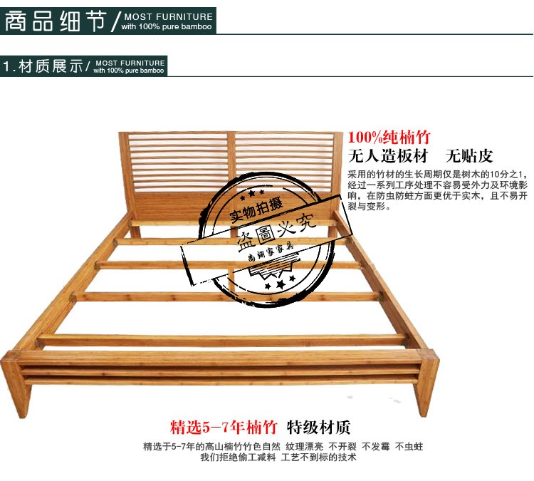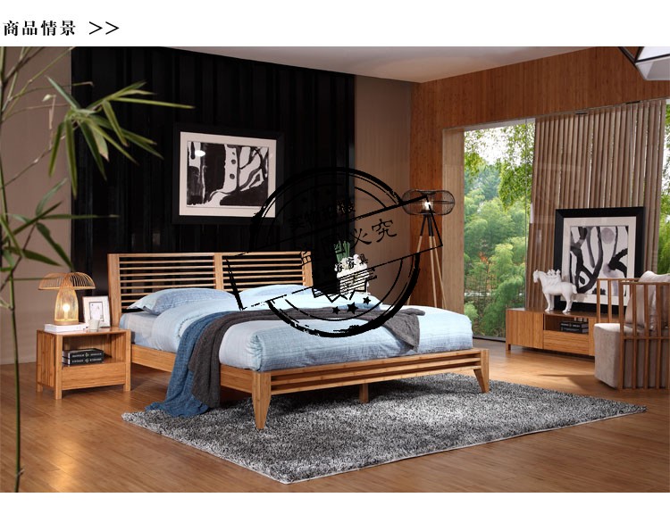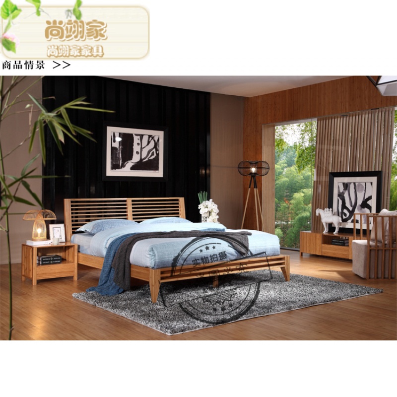 商品名称:尚翊家 卧室家具套装组合双人床靠背 楠竹床婚床大床实木床创意