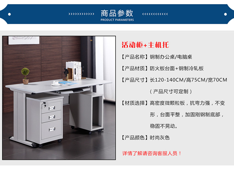 商品名称:1.2米钢制办公桌子职员办公桌椅组合铁皮办公电脑桌1.4单人办公桌