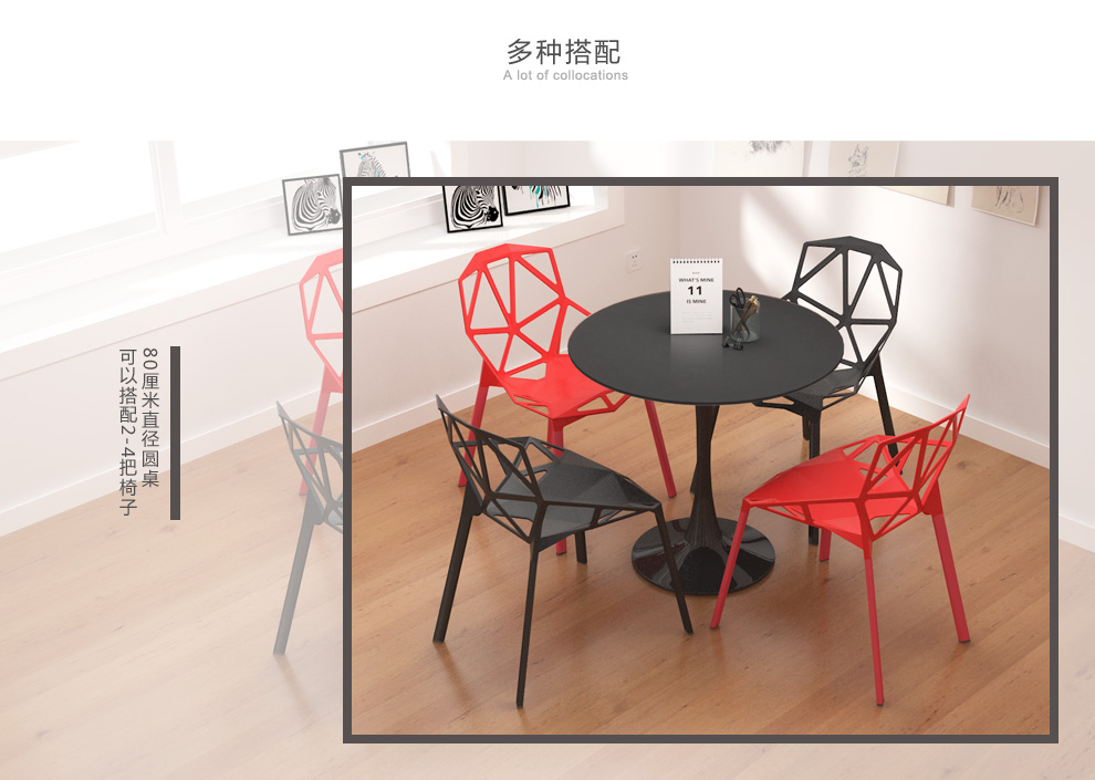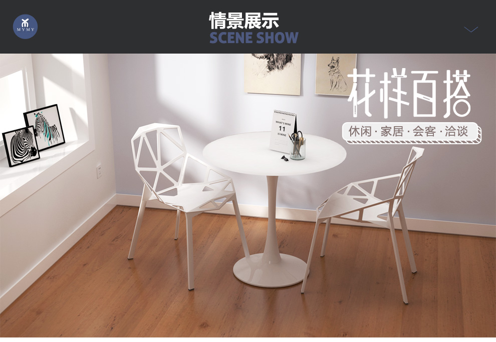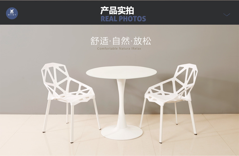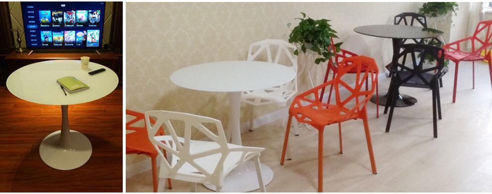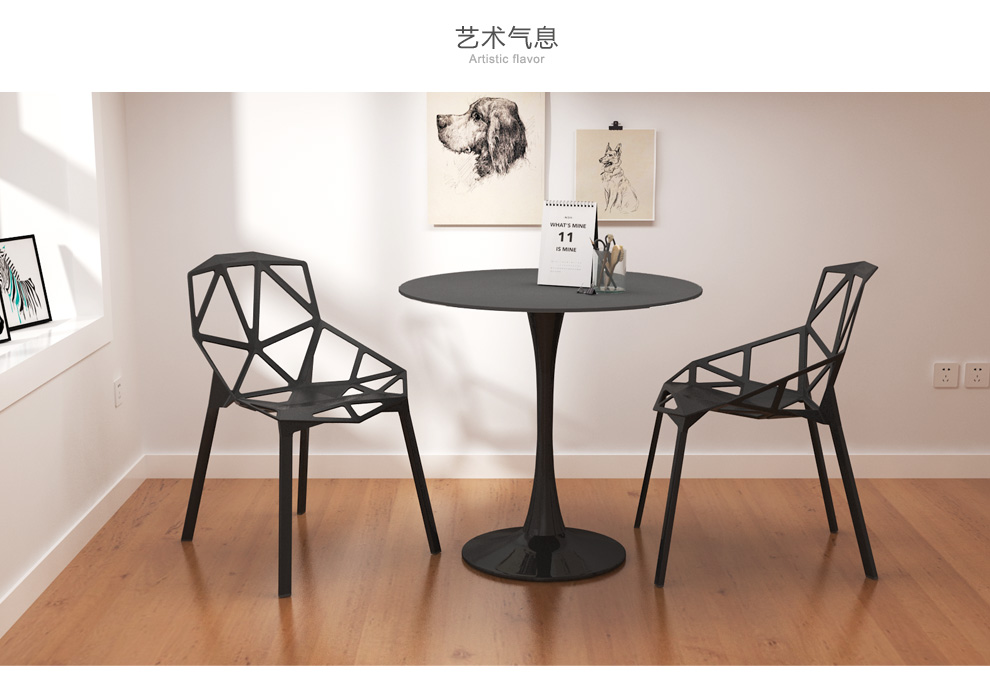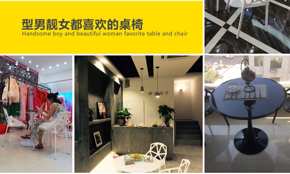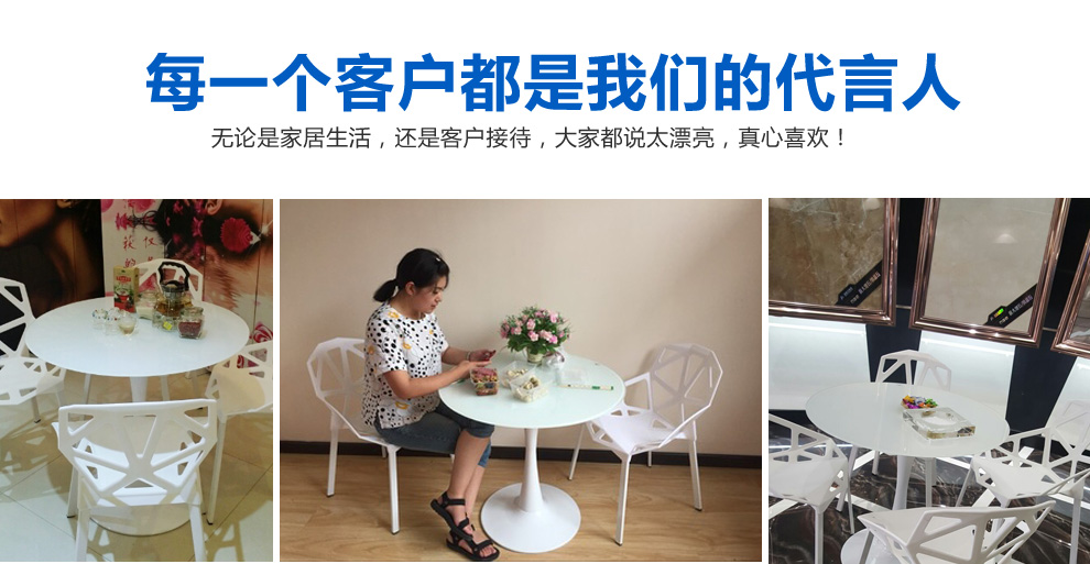美因美易洽谈接待桌椅组合钢化玻璃圆桌塑料时尚休闲椅门店会客