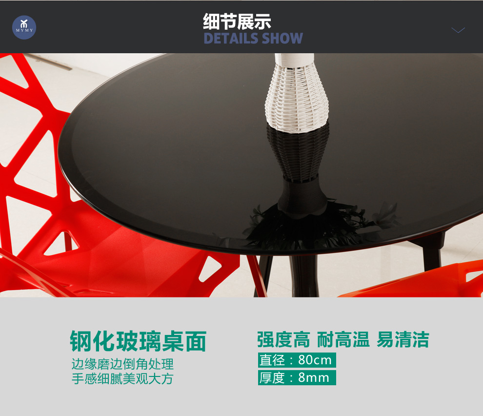 商品名称:美因美易洽谈接待桌椅组合钢化玻璃圆桌塑料时尚休闲椅门店会客