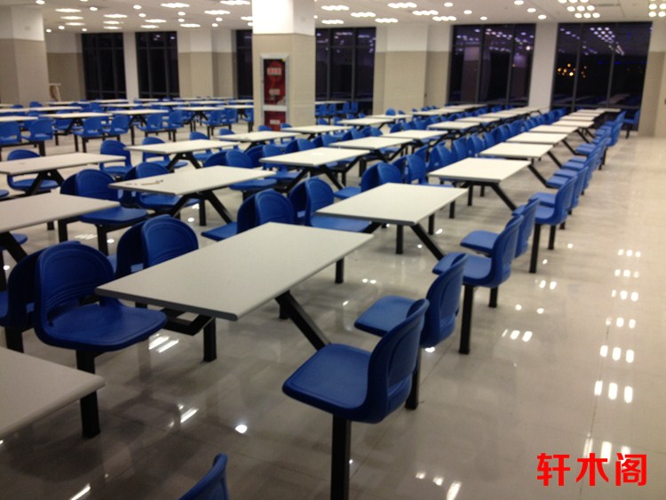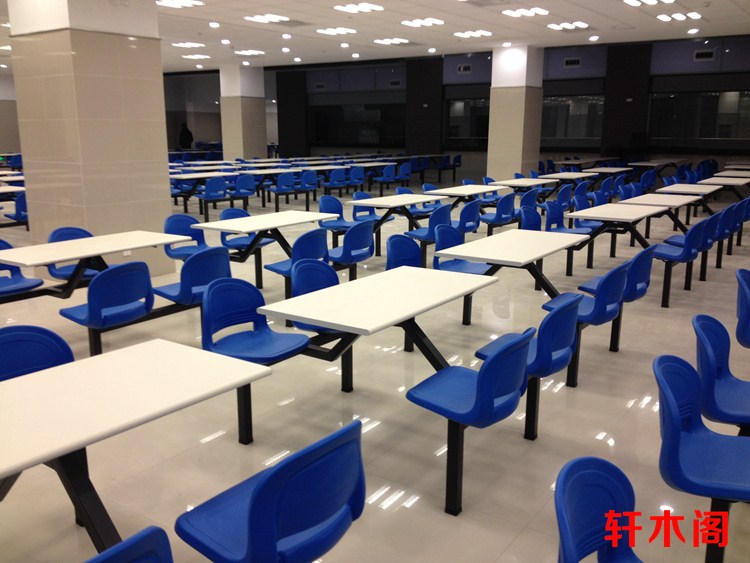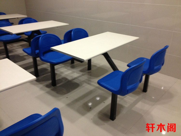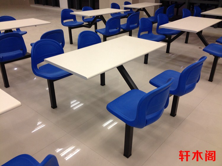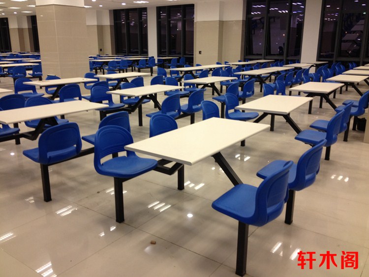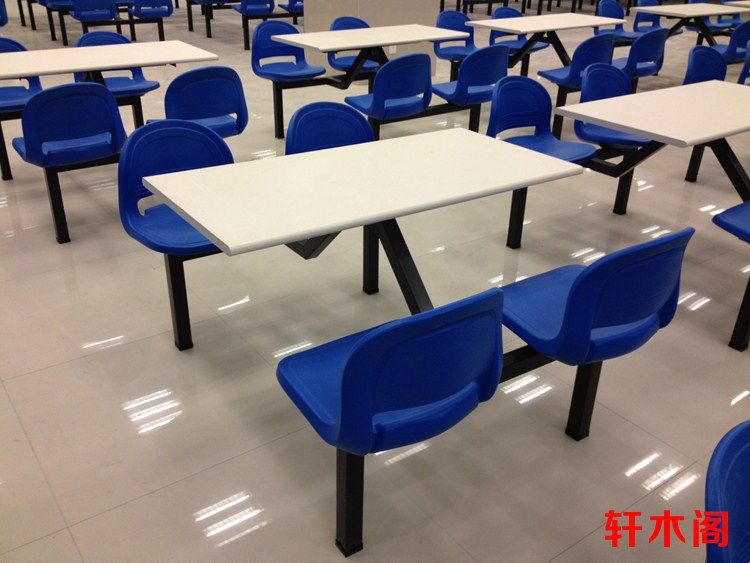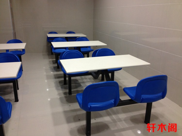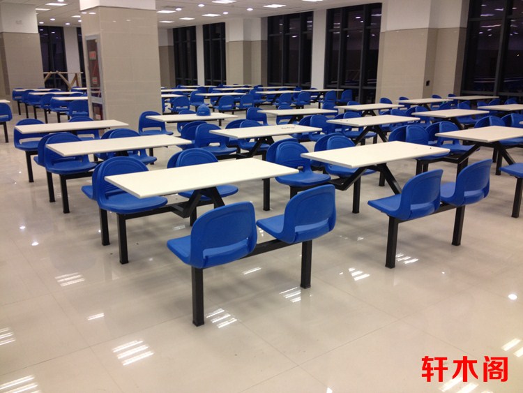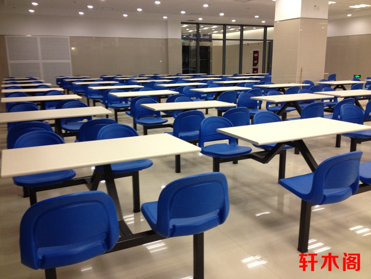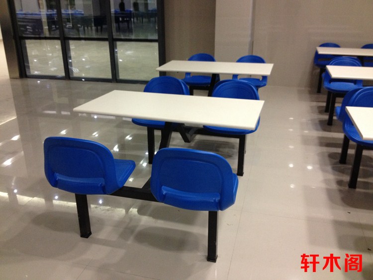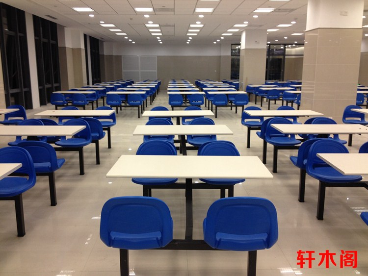 彧龙 食堂餐桌 中空塑胶料椅面耐用学校食堂餐桌椅连体餐桌椅快