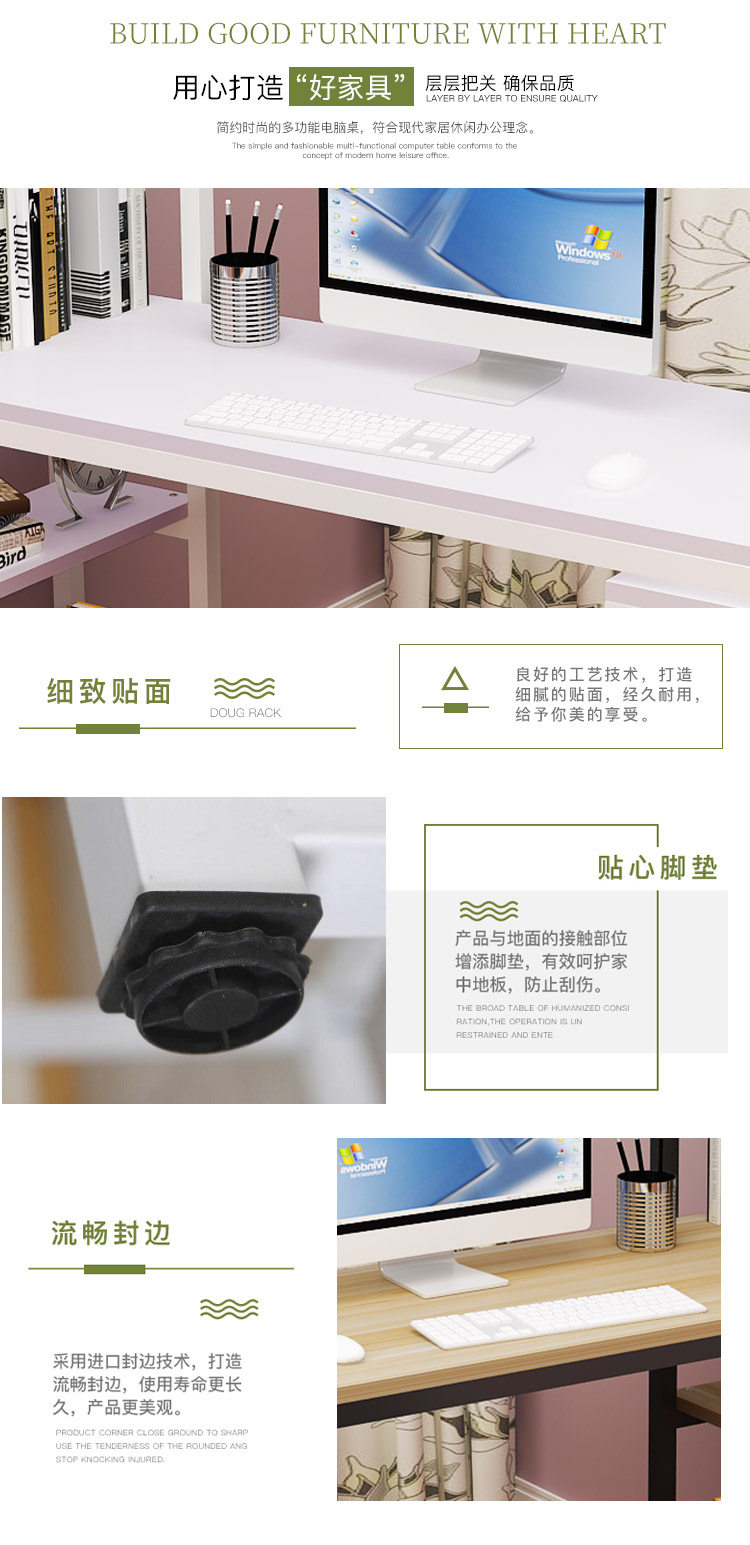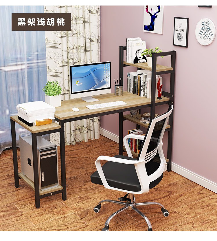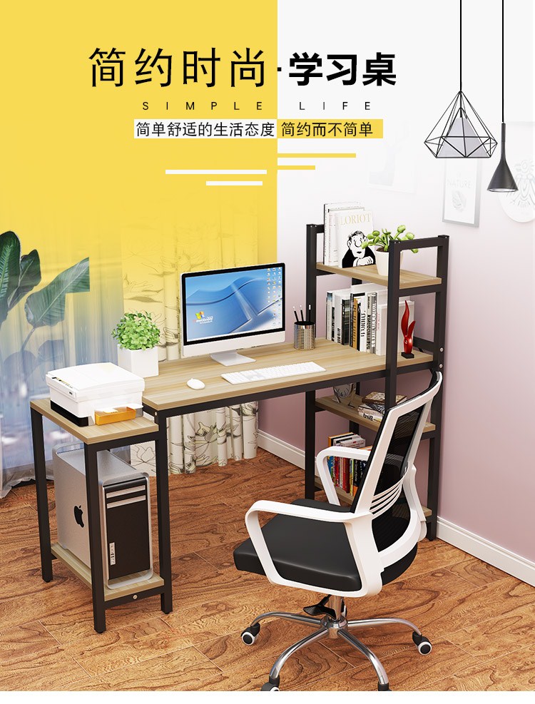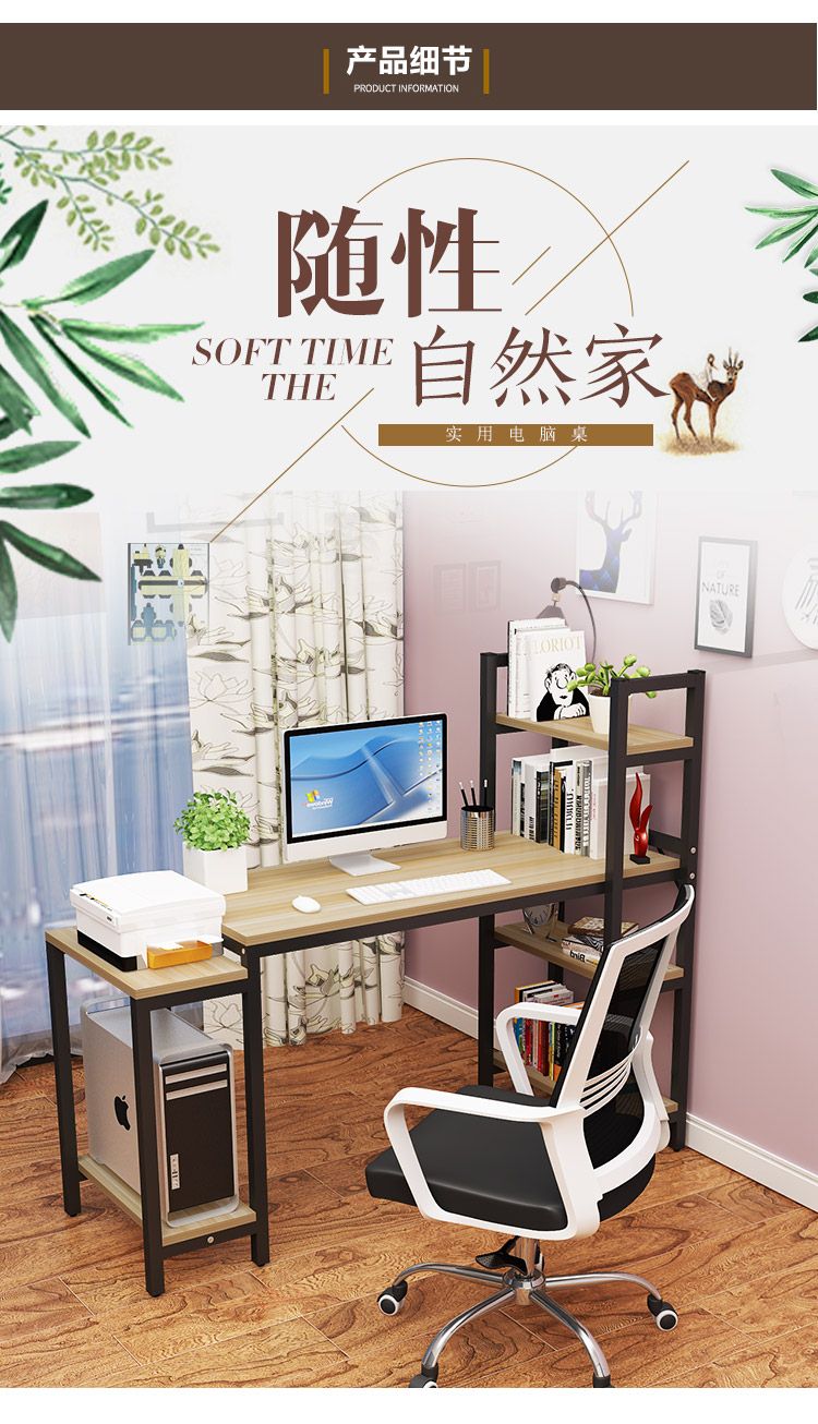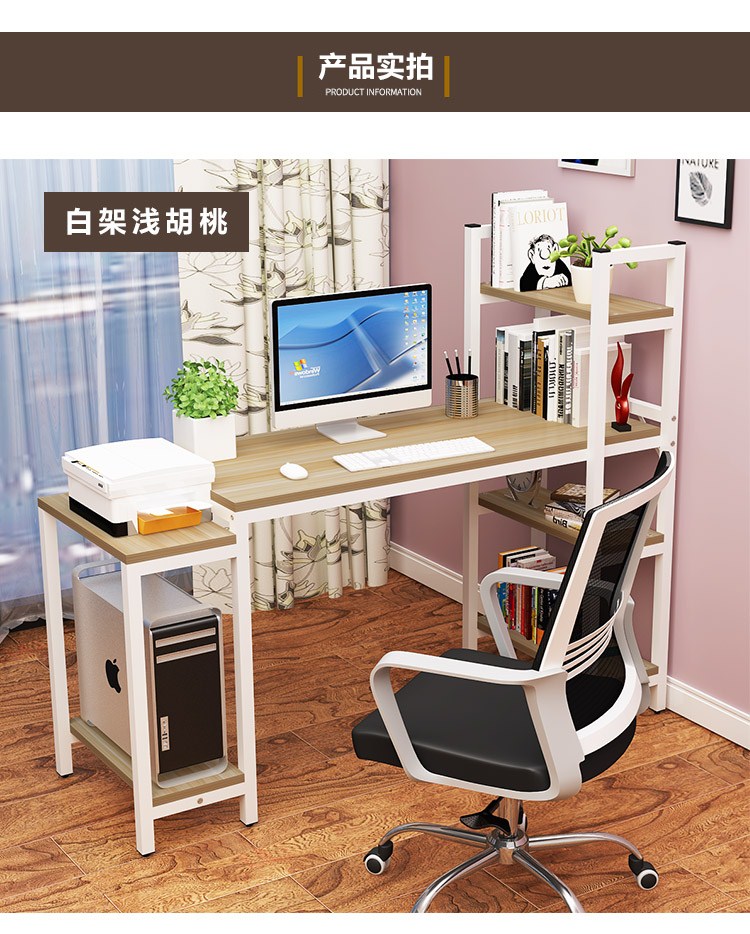 商品名称:榆品居 电脑桌台式钢木书桌写字台板式简约学习桌办公桌子浅胡桃