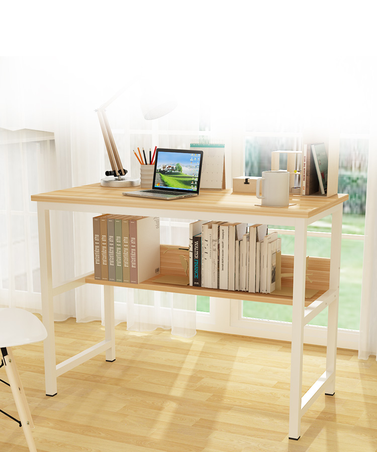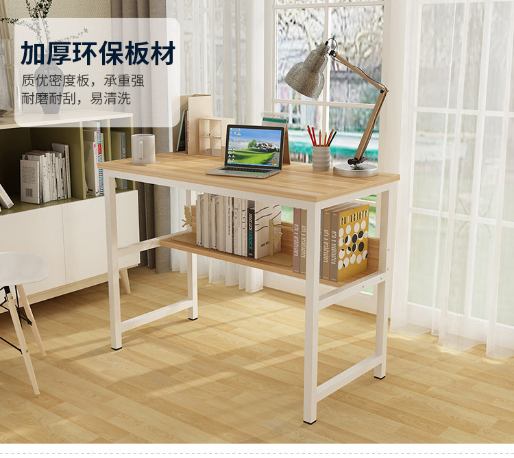 商品名称:帅力 电脑桌 钢木带书架笔记本书桌简约台式学习办公桌子橡木色S