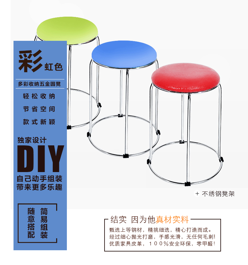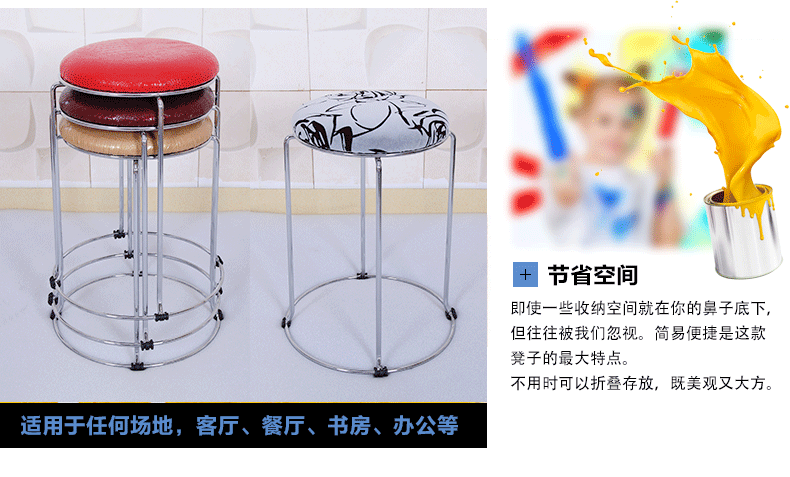 商品名称:时尚创意家用凳子小圆凳金属折叠凳餐凳板凳皮凳五金凳子不锈钢
