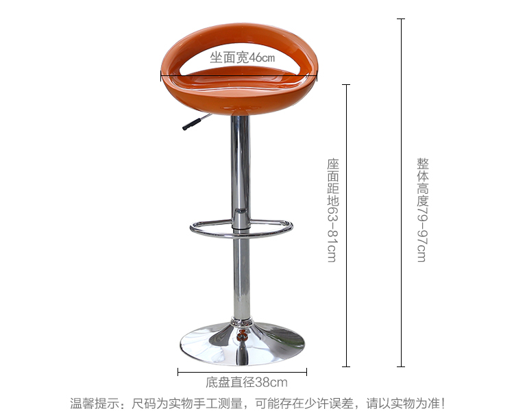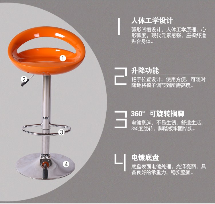 商品名称:华恺之星 吧台椅凳子 餐椅子酒吧椅吧凳 可升降高脚凳HK102桔黄