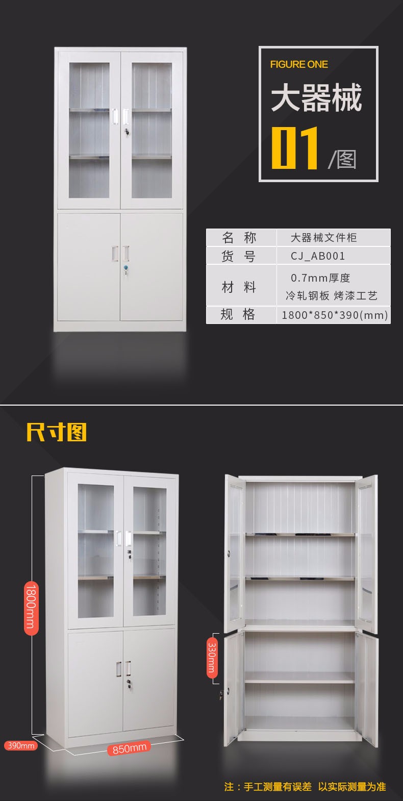 初嘉文件柜 大器械办公柜钢制铁皮柜 资料柜档案柜子 0.7mm