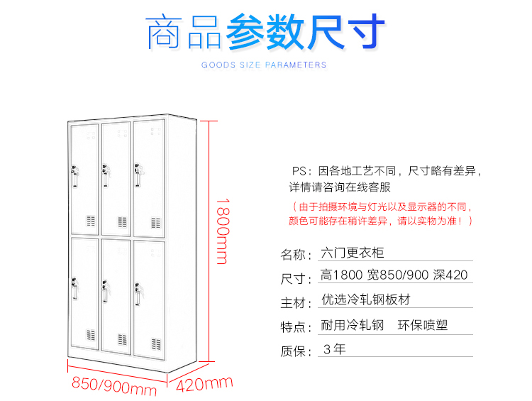 商品名称:中伟六门更衣柜铁皮柜储物柜员工柜寄存包柜鞋柜
