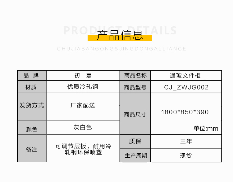 商品名称:初嘉(CJ)文件柜 钢制铁皮柜 办公柜资料柜档案柜子 通玻文件柜