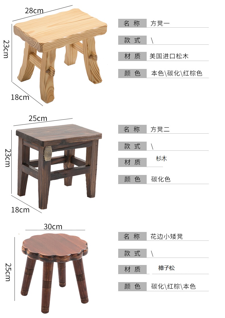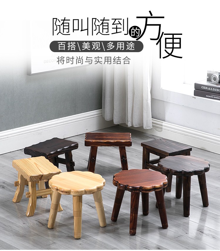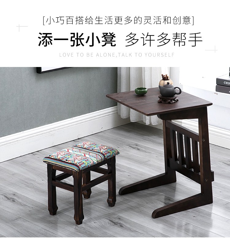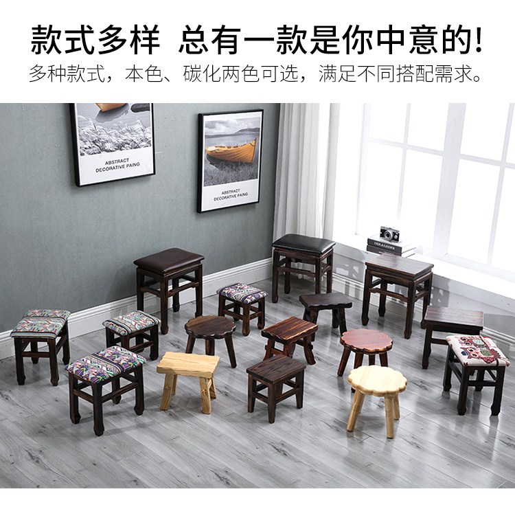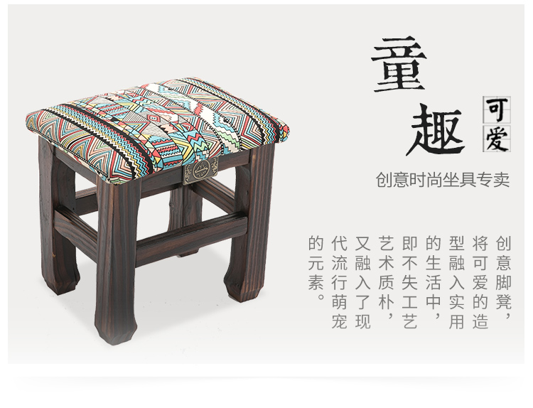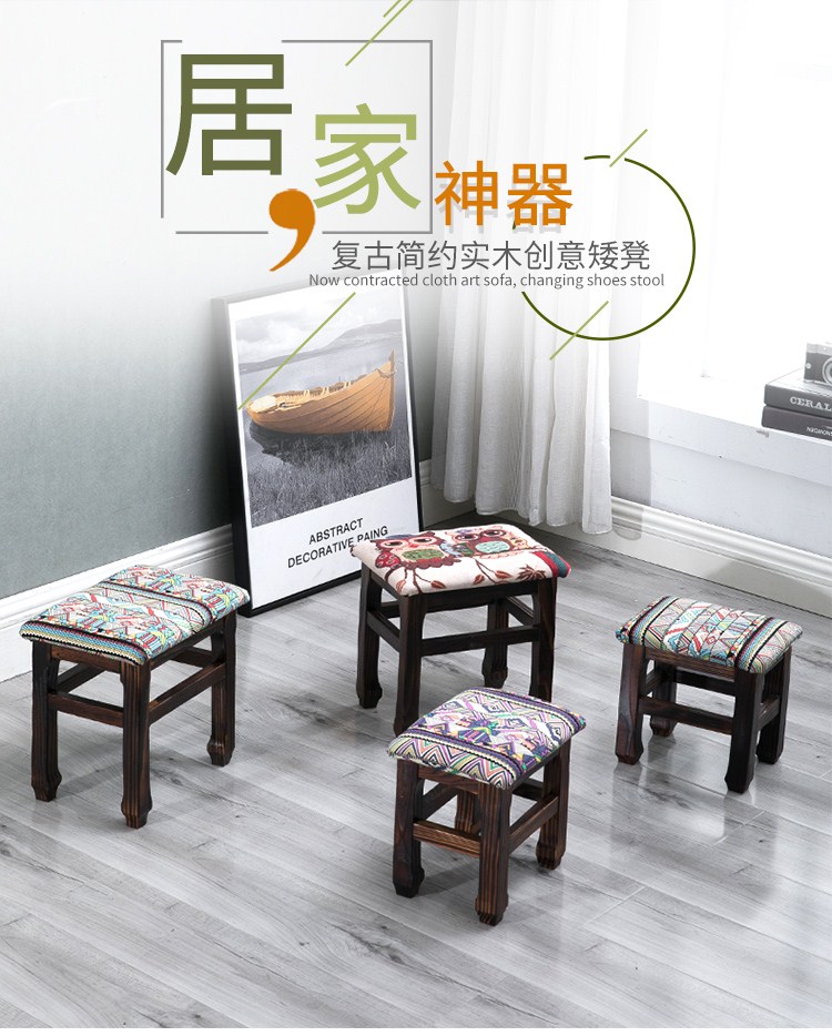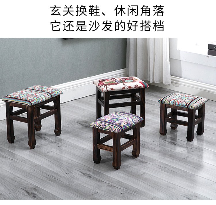 商品名称:小凳子家用木制换鞋凳仿古小方凳实木矮凳子加厚客厅布艺板凳HL1