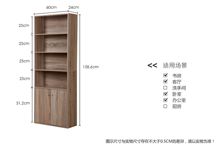 商品名称:慧乐家 书柜书架 鲁比克六层带门组合储物收纳柜子层板可调节置