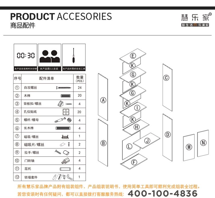 慧乐家 书柜书架 鲁比克六层带门组合储物收纳柜子层板可调节置