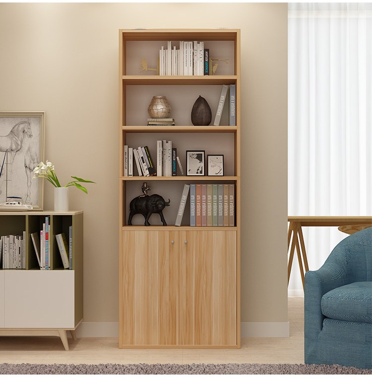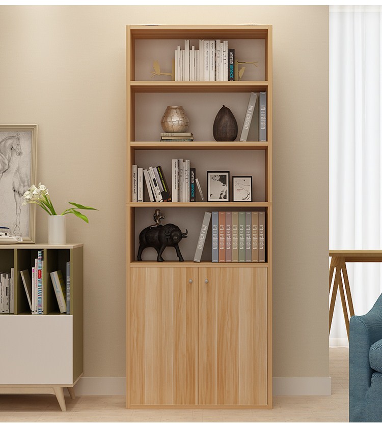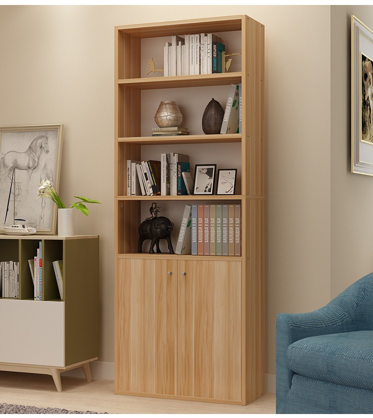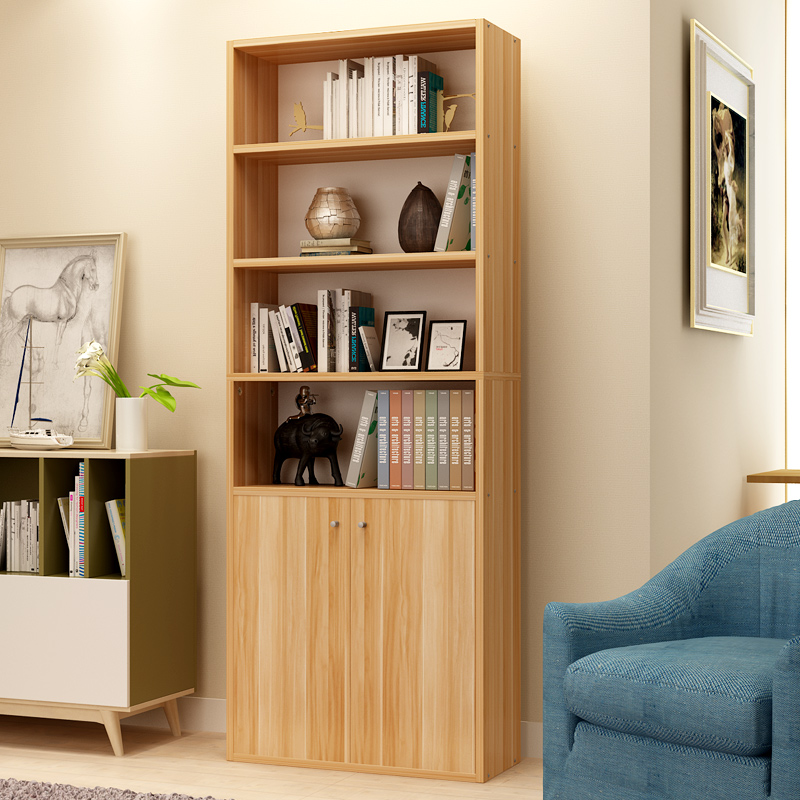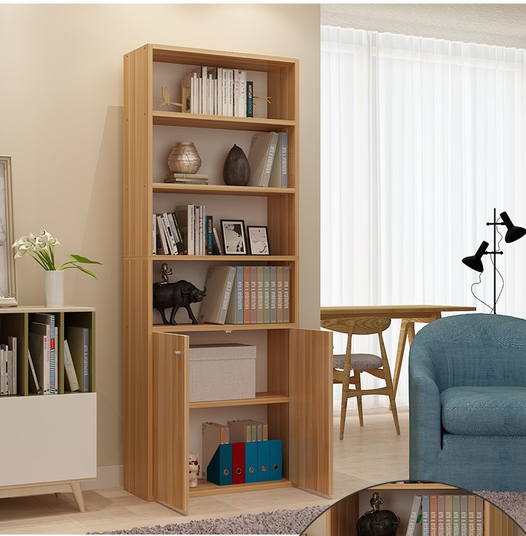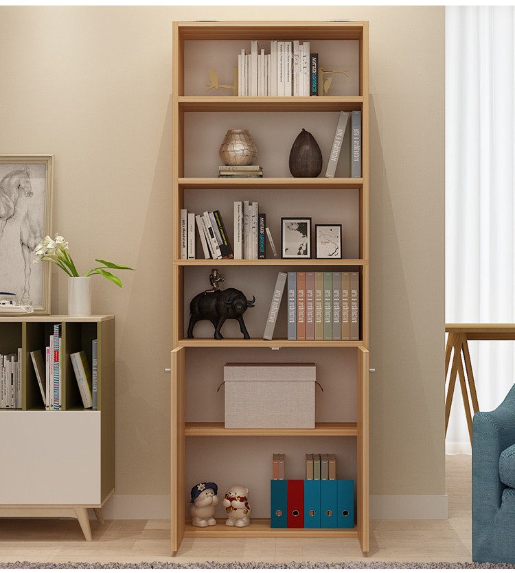 雅美乐 书柜书架 六层木质带门防尘储物收纳柜子层板可调节置物