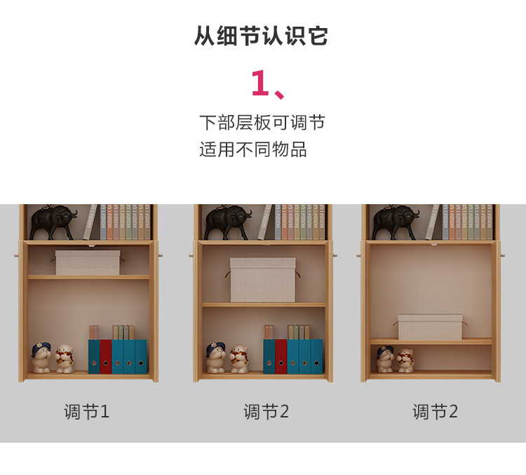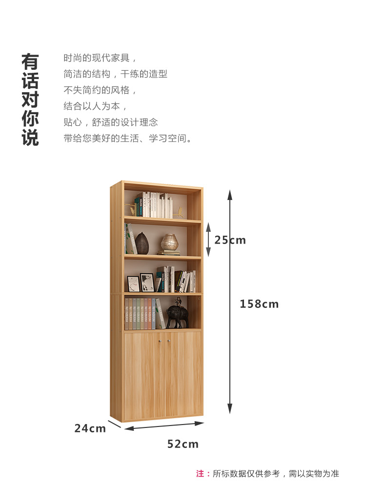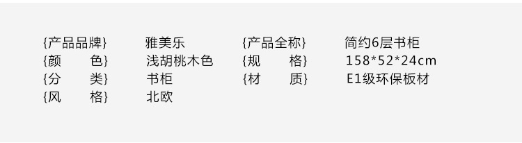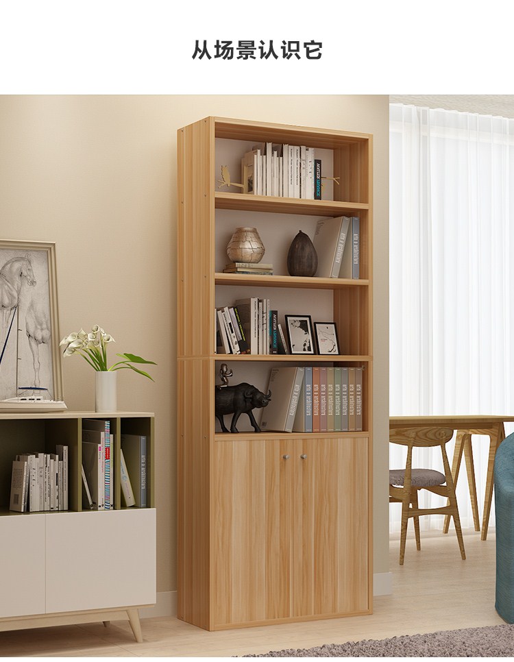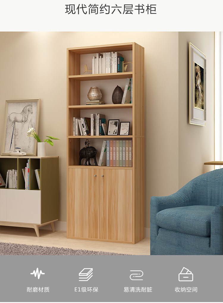 商品名称:雅美乐 书柜书架 六层木质带门防尘储物收纳柜子层板可调节置物