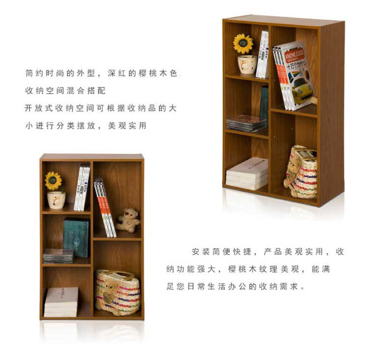 商品名称:慧乐家 书柜书架 鲁比克五格简易书橱柜子 储物置物架深红樱桃木