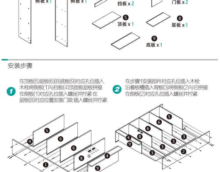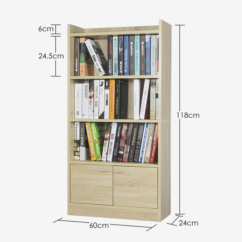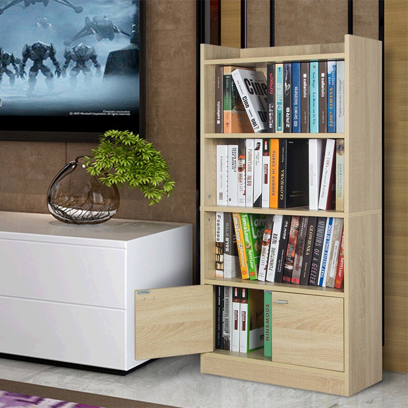 沃变 书柜书架 四层双门书柜书架置物架文件柜储物收纳柜子加宽