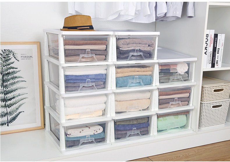 也雅透明塑料收纳柜抽屉式箱盒整理储物柜四层
