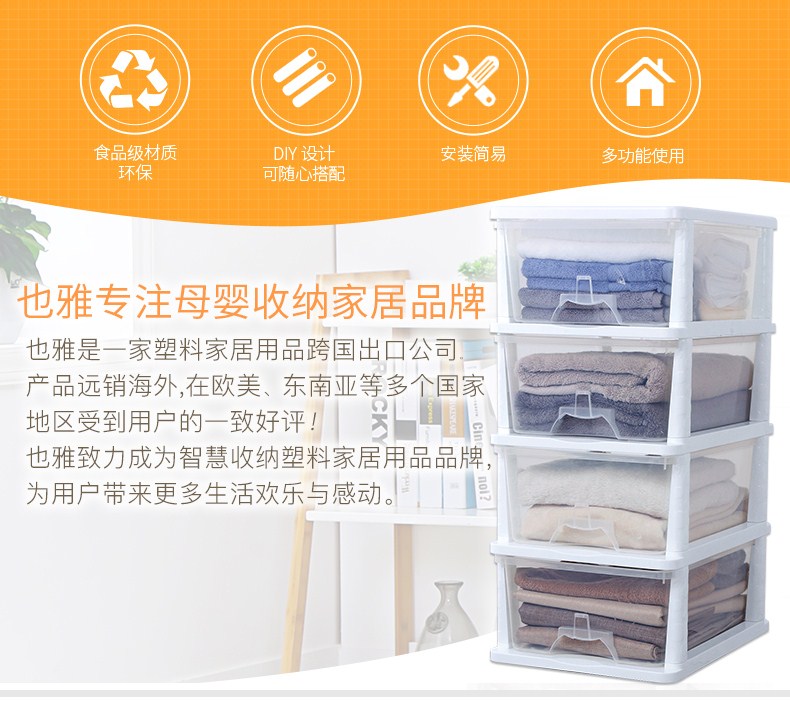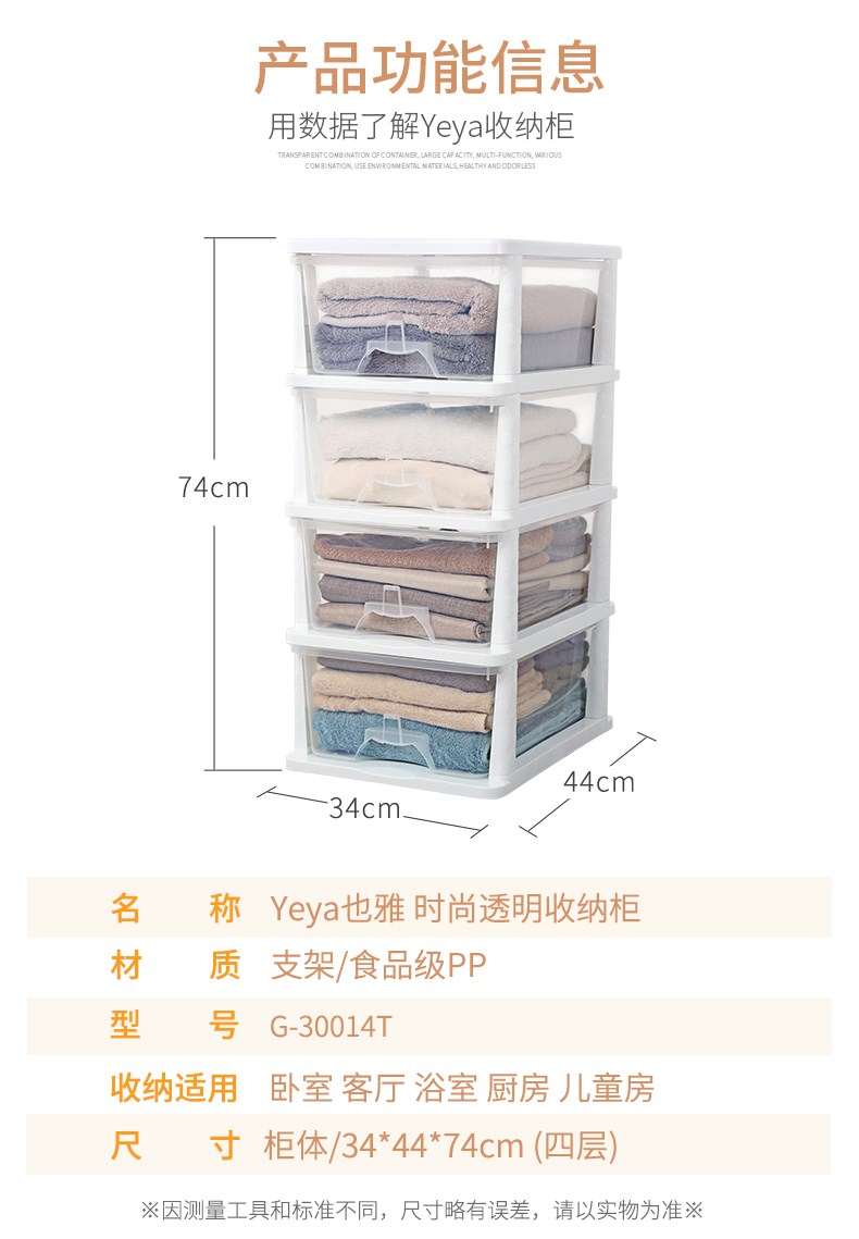 商品名称:也雅透明塑料收纳柜抽屉式箱盒整理储物柜四层