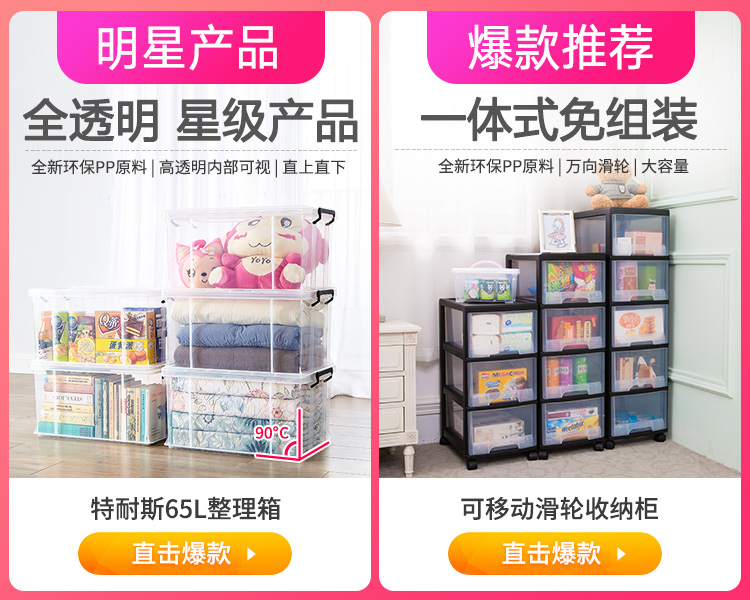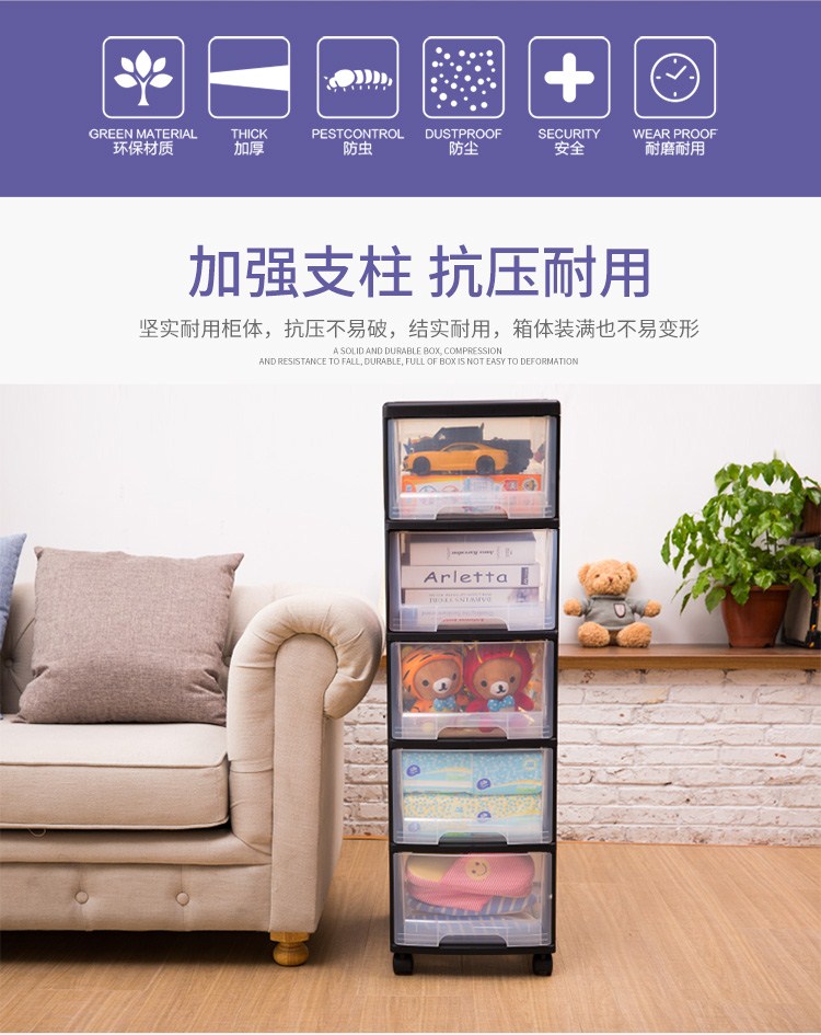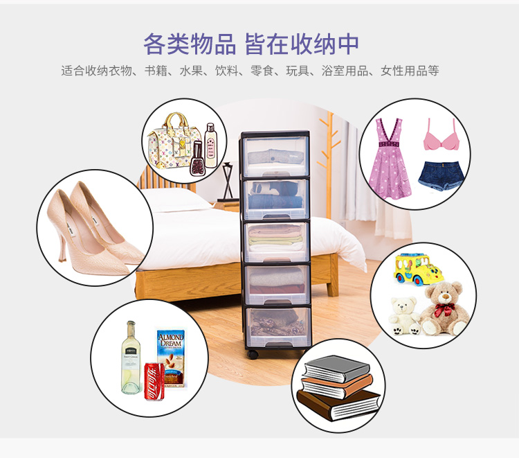 JEKO-JEKO透明塑料儿童衣柜宝宝收纳盒夹缝五斗柜储物抽屉式收纳