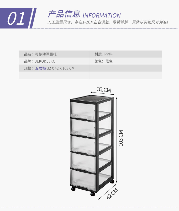 商品名称:JEKO-JEKO透明塑料儿童衣柜宝宝收纳盒夹缝五斗柜储物抽屉式收纳