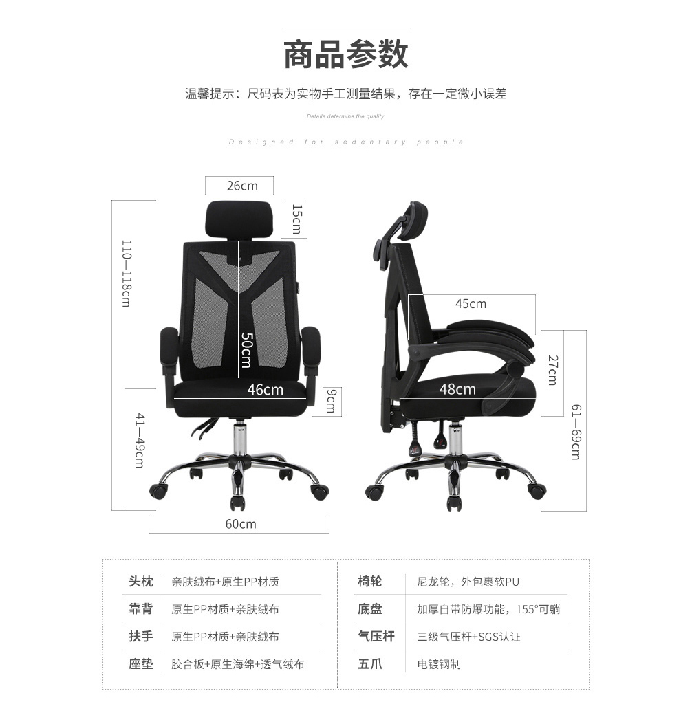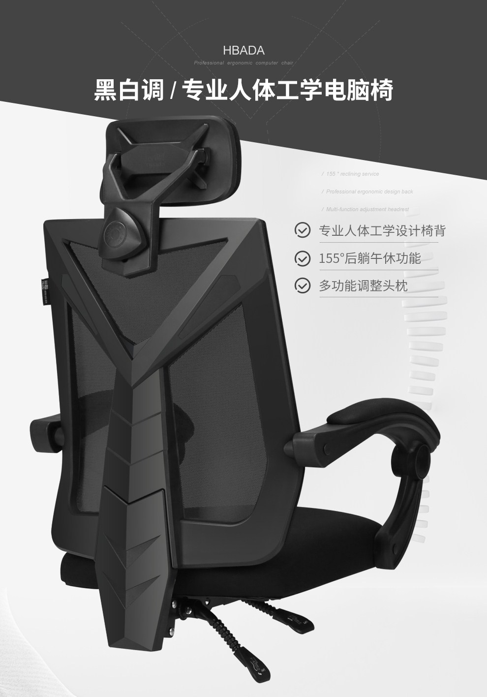 商品名称:黑白调(Hbada)电脑椅办公椅子人体工学椅靠背椅电竞椅家用座椅老
